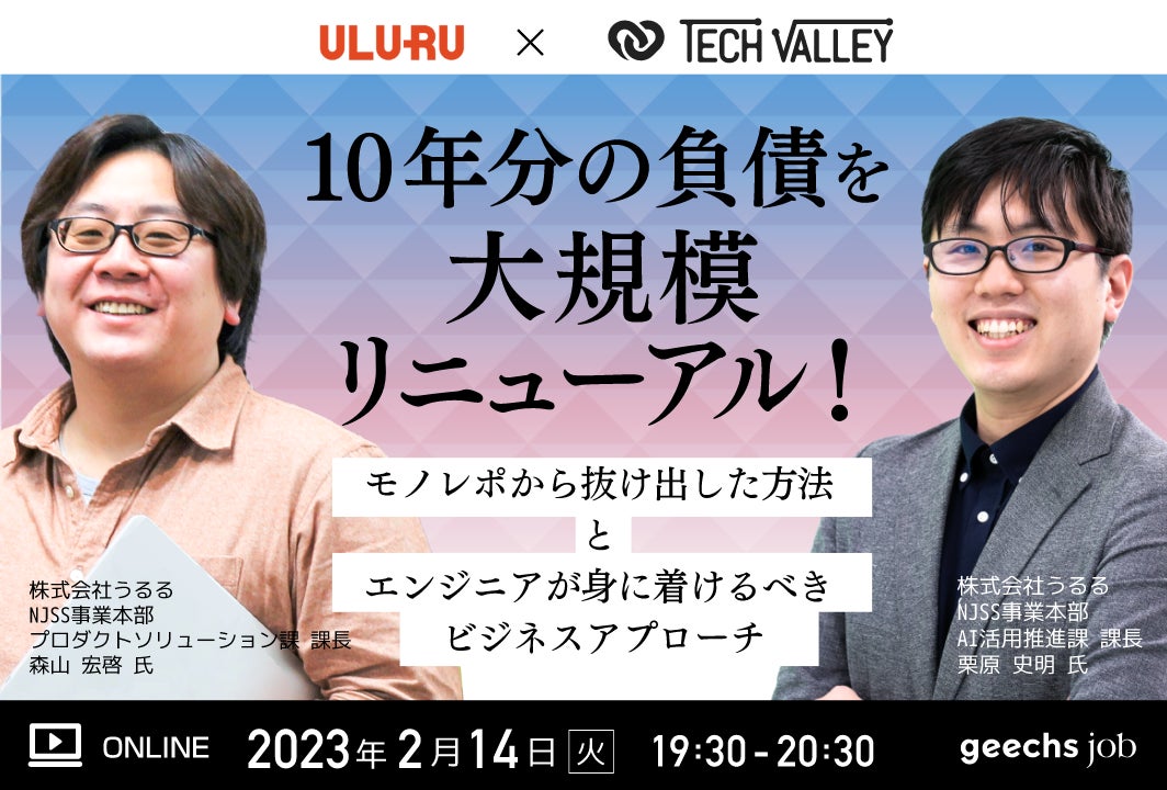 そこで今回は、「昨今注目されている『マイクロサービス』について理解を深めたい」「開発戦略のリニューアルの際に必要とされるエンジニアスキルについて知りたい」といった「ギークスジョブ(geechs job)」登録者の方々の声をもとに、「10年分の負債を大規模リニューアル!『モノレポから抜け出した方法』と『エンジニアが身に着けるべきビジネスアプローチ』」を開催します。