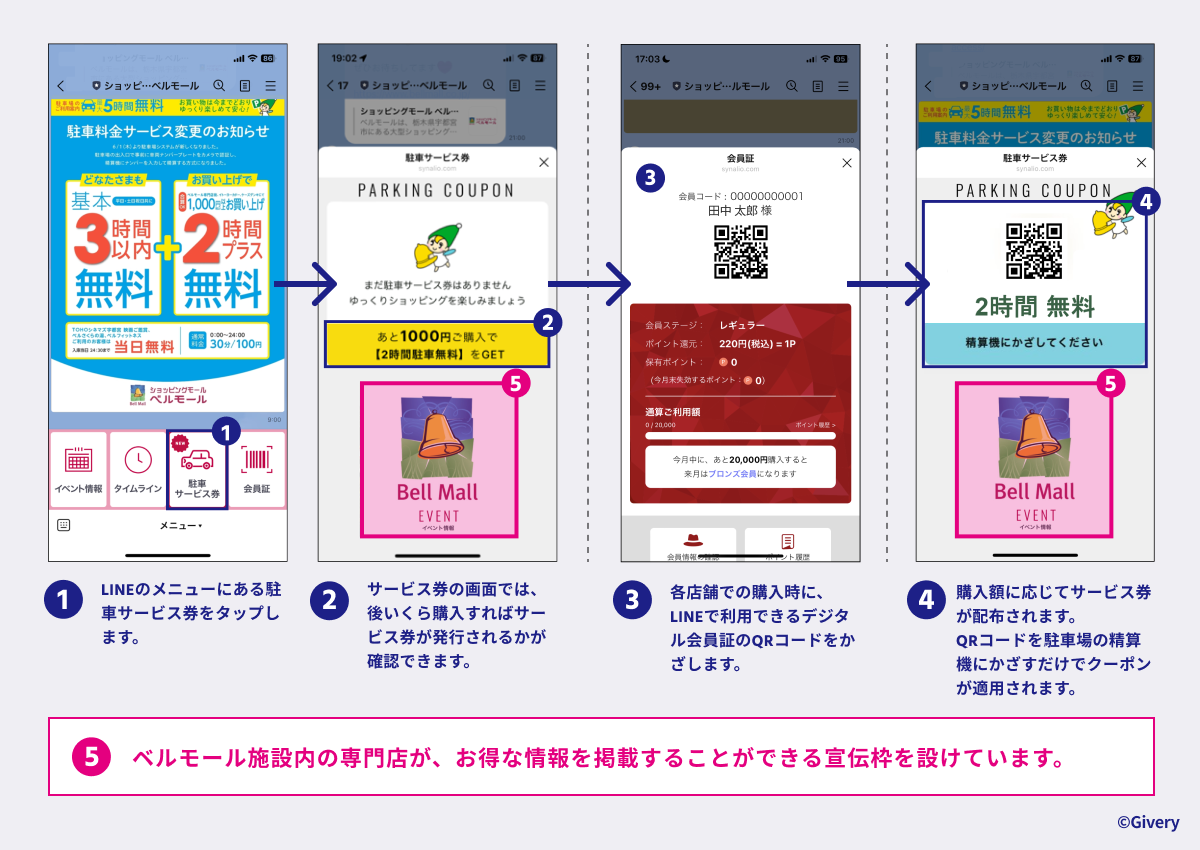 ギブリー、大型商業施設ベルモールのDXを支援。DECA for LINEで、デジタル会員証と連携した、LINE完結型の駐車サービス券を実装。