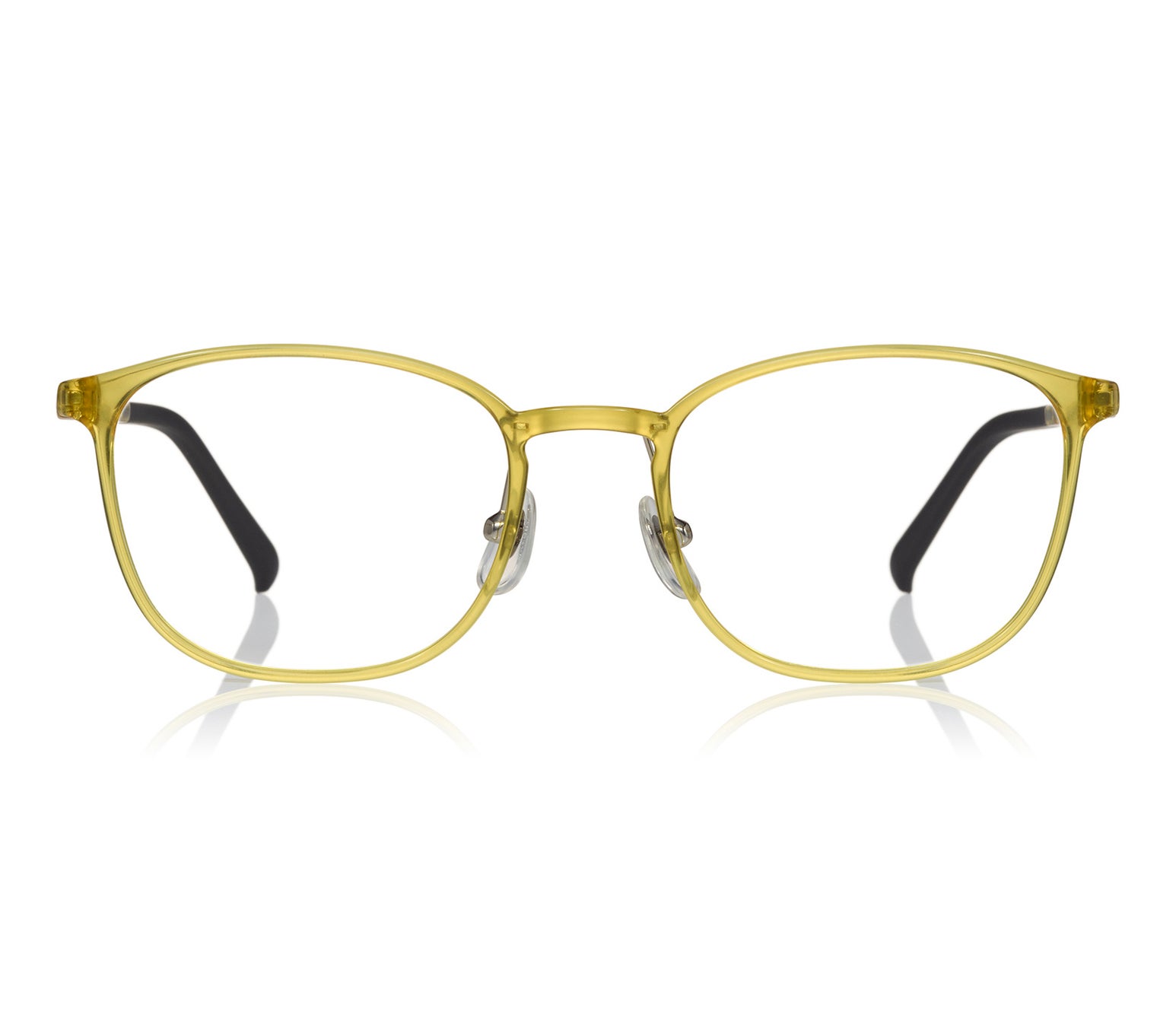 知的で誠実な印象を与える定番のスクエア型はオンオフ問わず活躍する万能デザイン。イエローカラーはウルテム樹脂本来の色味になっており、店頭展示用サンプルフレームのカラーをぜひ商品化してほしい、というお客様の声を受けて誕生しました。アクセントカラーとして休日のカジュアルスタイルを華やかに演出する一本です。