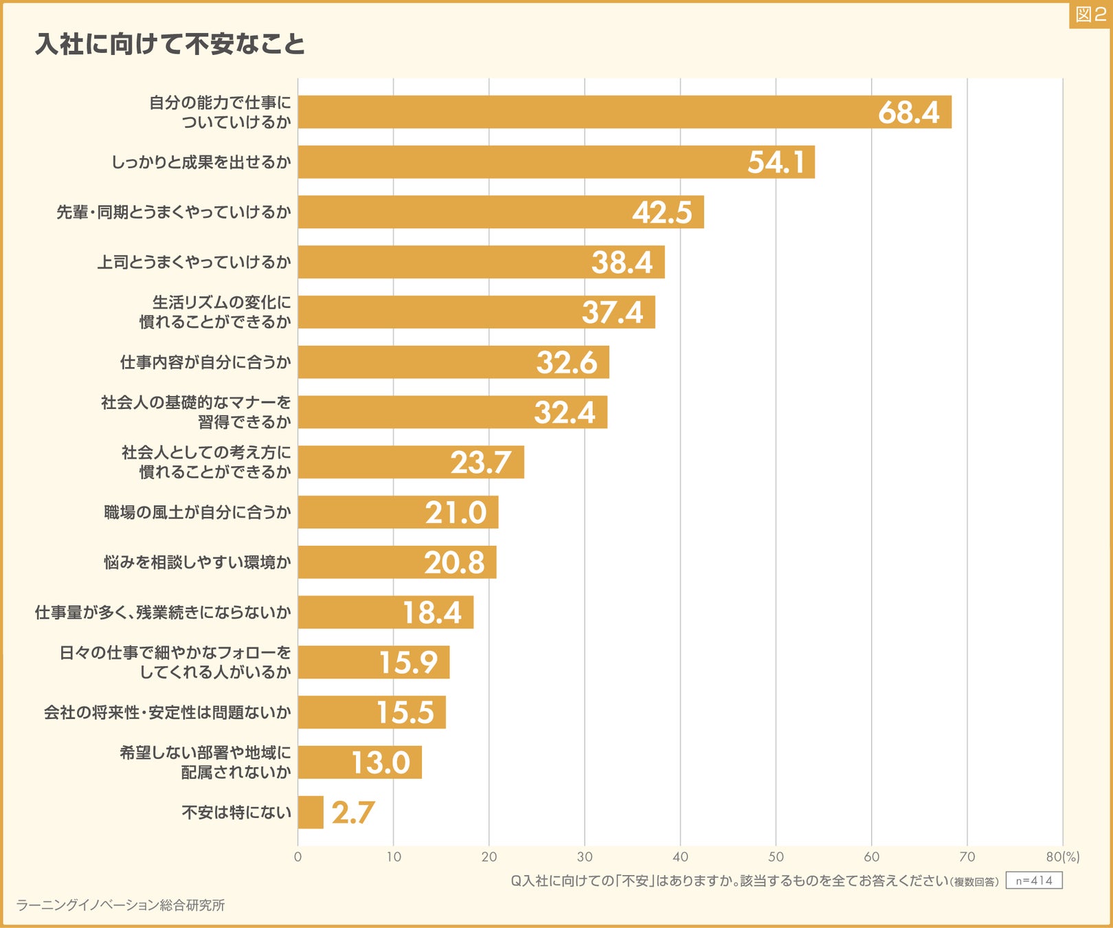2. 約7割の内定者が「自分の能力で仕事についていけるか」に不安を感じている