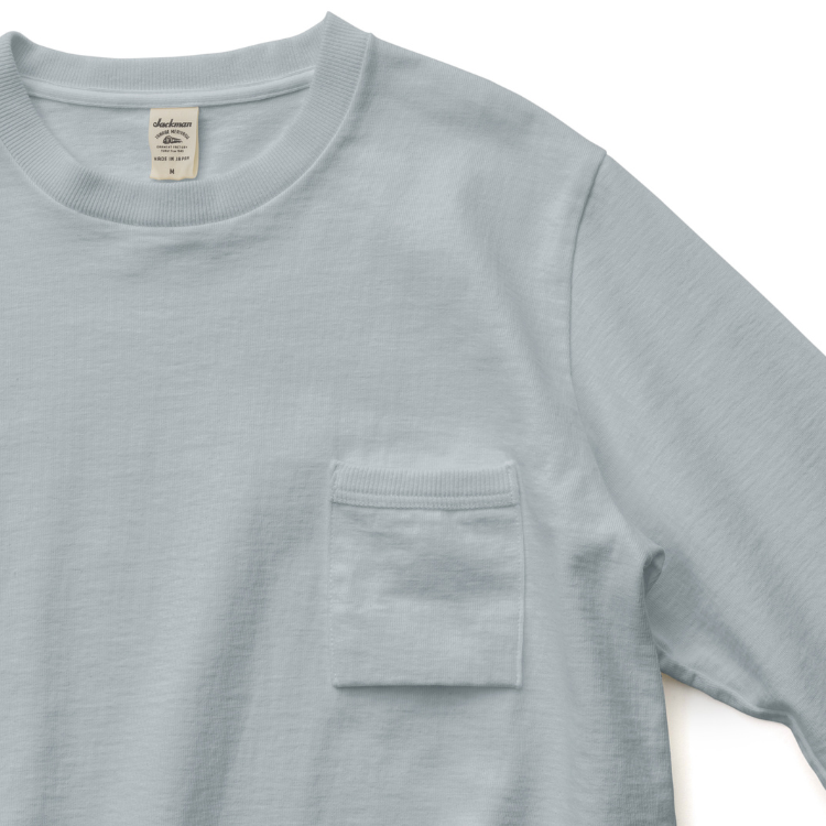大ヒットした「Dotsume Rib Tee」でも使われた「究極の度詰め」生地は、極厚なのに着心地がよいという不思議な魅力を持っています。この生地を使った今回のハーフスリーブTシャツは、形がずばりベースボールTシャツ。野球を愛するJackmanの思想が詰まった人気のアイテムです。