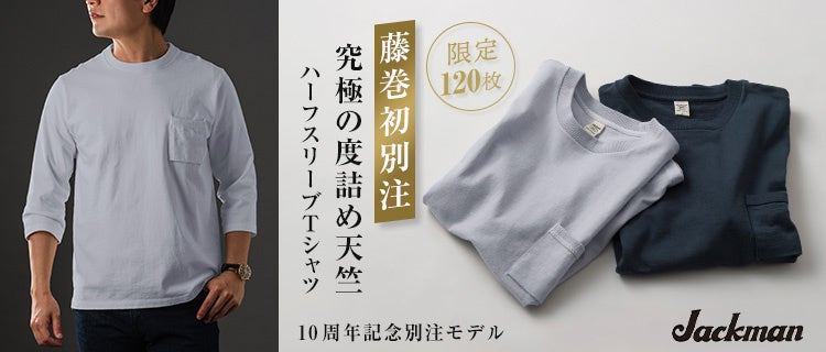 藤巻百貨店10周年を記念し、「Jackman」の度詰めハーフスリーブTシャツの別注カラーが数量限定で「年越しカウントダウン&初売り特集」に登場いたします!