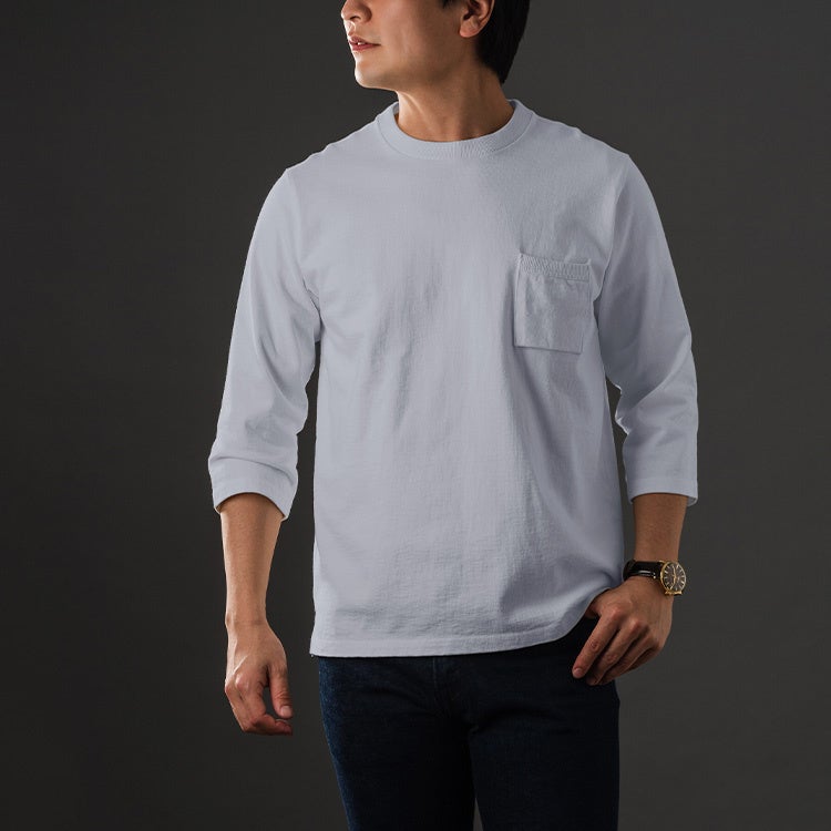 半袖よりもちょっと長めのこの丈は、暑くても普通に半袖と同じ感覚で使えるだけでなく、スタイリングのニュアンスも作ることができ着こなしに幅が出せます。また着用シーズンも、春から秋まで長く使えるところも嬉しいポイントです。