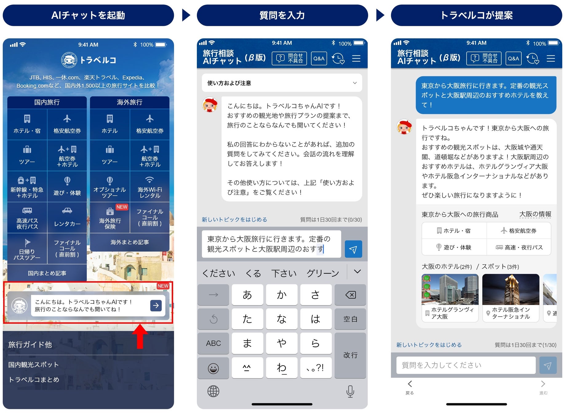 【トラベルコ】アプリに新機能!「旅行相談AIチャット(β版)」の提供開始