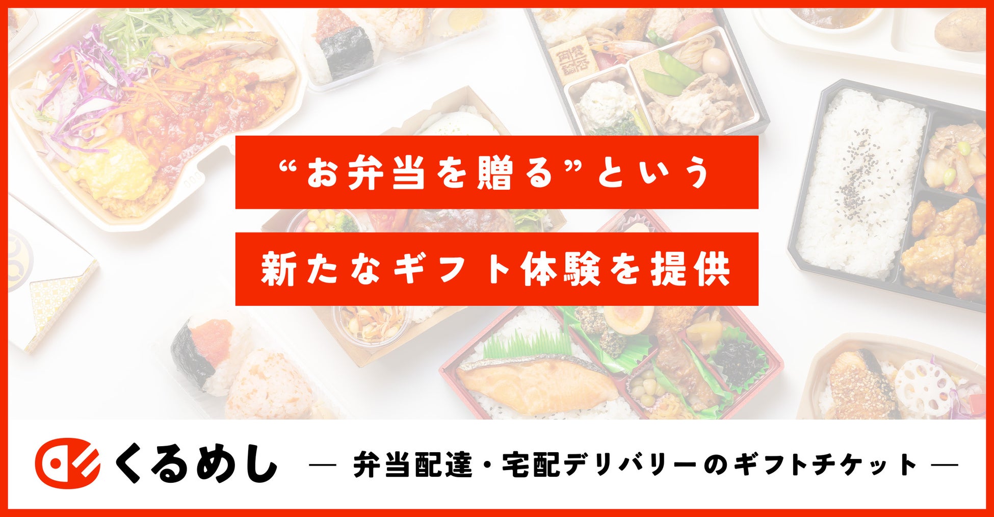 国内最大級の法人向け弁当デリバリーサービス「くるめし弁当」(運営:株式会社くるめし、本社:東京都渋谷区、代表取締役:小林 篤昌)は、2026年1月27日(火)より、株式会社ギフティ(本社:東京都品川区、代表取締役:太田 睦、鈴木 達哉/以下、ギフティ)が提供する「eGift System」サービスを導入し、ギフティが運営するeギフト販売WEB/アプリサービス「giftee®」および、デジタルギフトを活用した法人および自治体向けサービス「giftee for Business」にて、ギフトチケット(デジタルギフト)「くるめし弁当 ギフトチケット」の販売を開始いたしました。