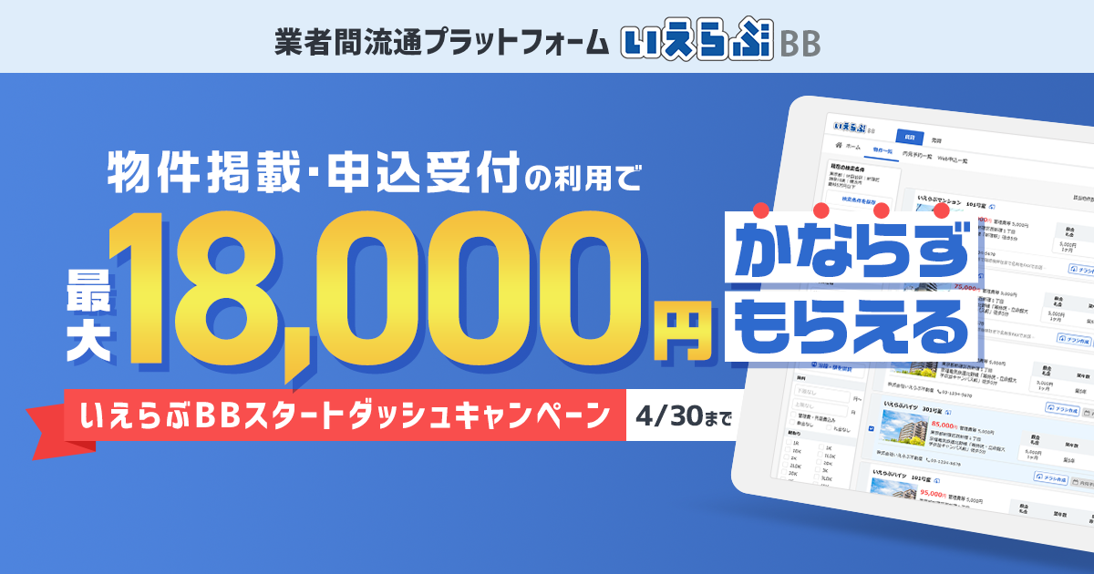 不動産テックに特化したバーティカルSaaSを提供する株式会社いえらぶGROUPは、業者間流通プラットフォーム「いえらぶBB」の利用を促進するスタートダッシュキャンペーンを開始しました。