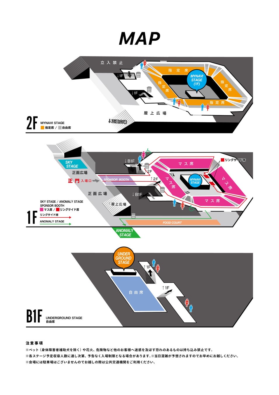 4つの特設ステージがそれぞれのプログラムで同時に進行するため、当日配布されるタイムテーブルを見ながら、