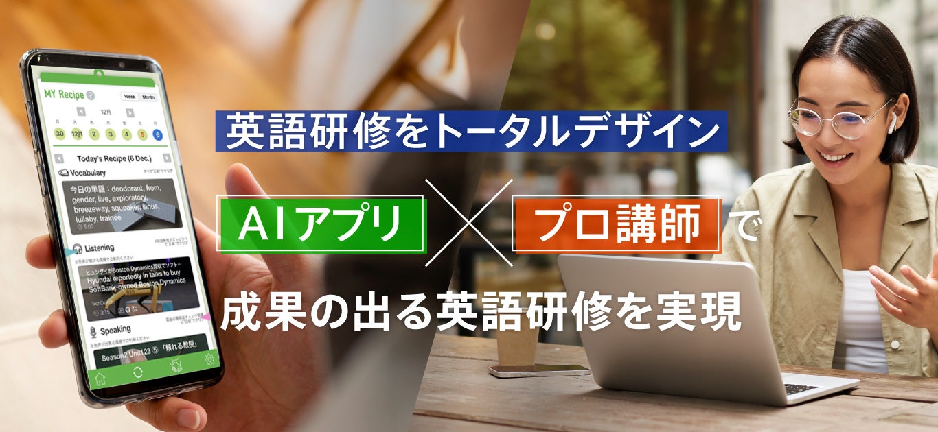 AI (アプリ) x 講師による個別最適化されたカリキュラムでビジネス英語研修をトータルデザインするサービス。