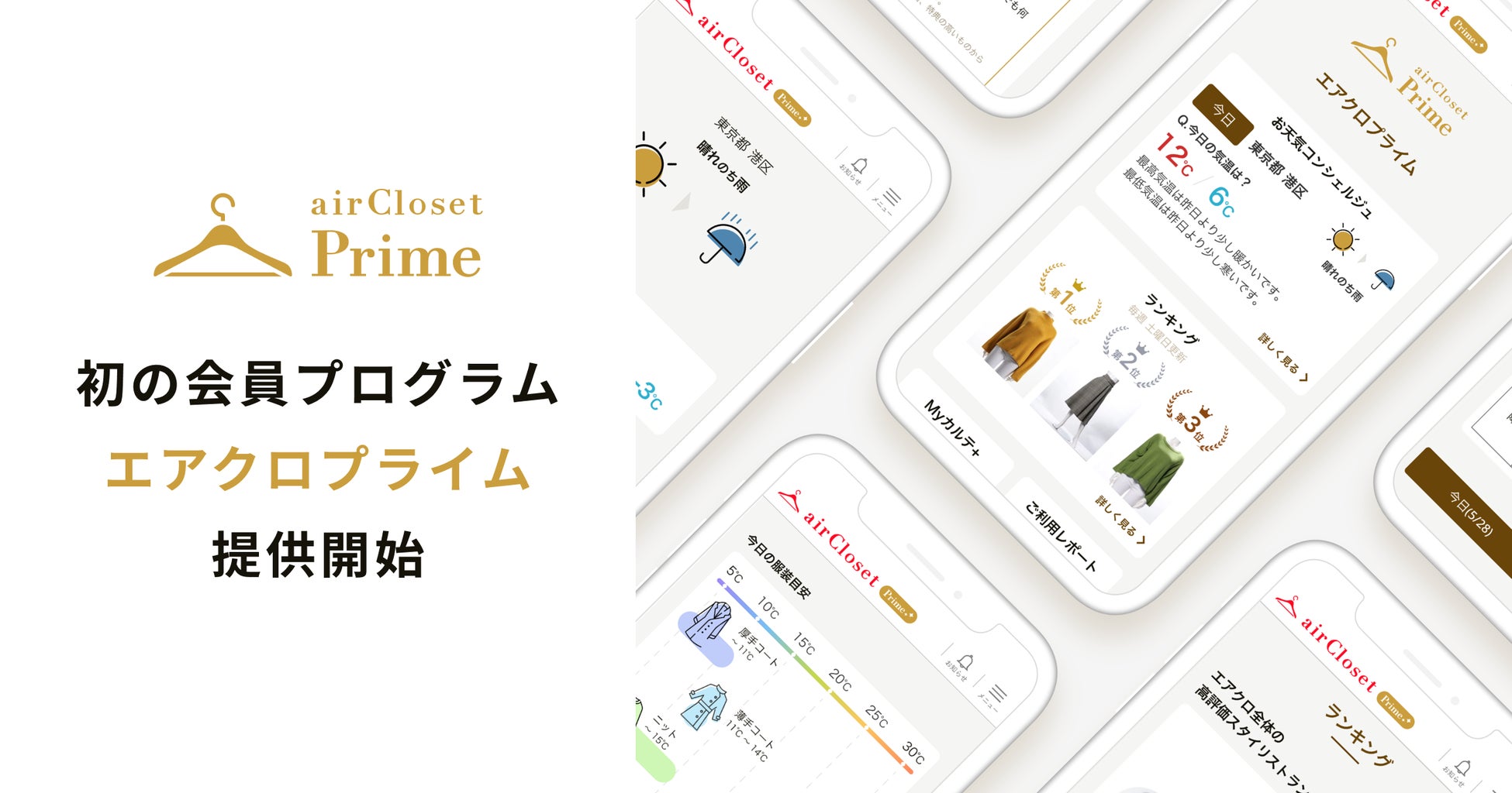 『airCloset(エアークローゼット)』が、初の会員プログラム「エアクロプライム」を提供開始