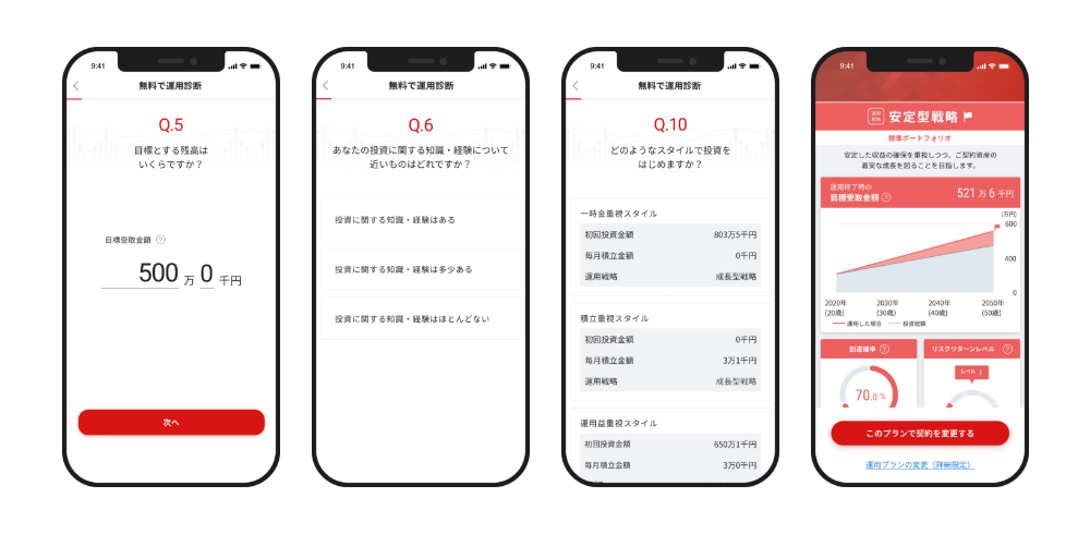 投資未経験者でも「無料診断」で簡単に最適なプランを選択することができます。