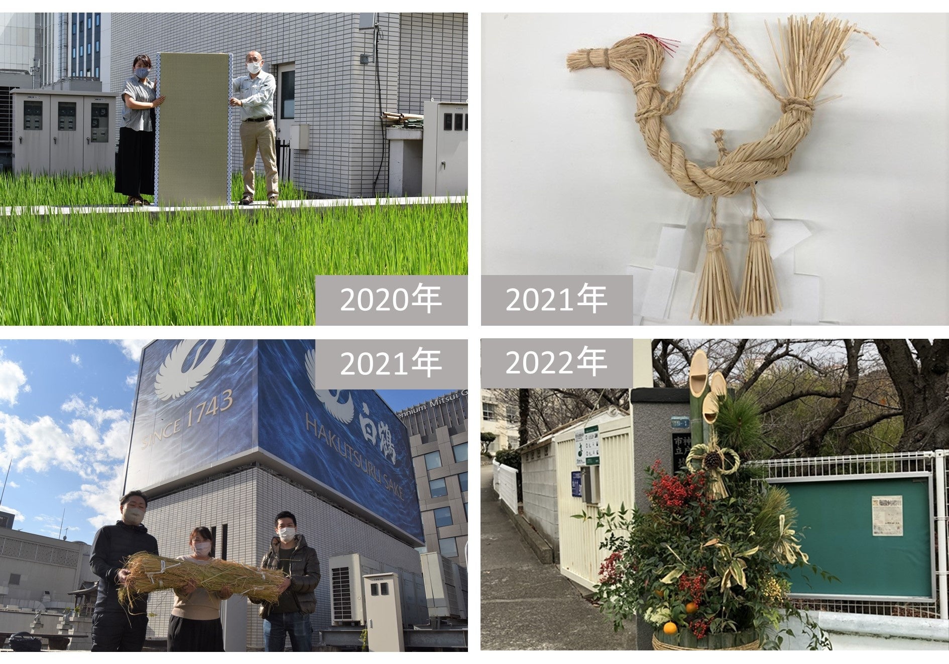 小学校の門松に飾るしめ飾り(兵庫県神戸市)や、子供たちのために相撲の土俵を作るプロジェクトで、土俵の一部として使われる(千葉県館山市)など、今まで廃棄していた稲藁を有効に活用しています。