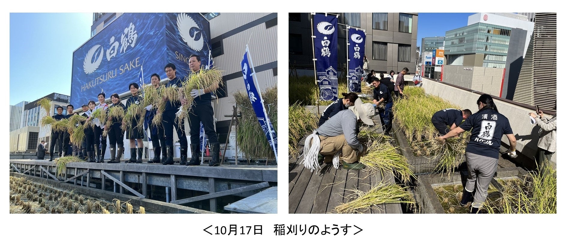 東京 ・銀座屋上の農園「白鶴銀座天空農園」で自社開発酒米「白鶴錦」の稲刈りが無事終了! ~穀物検査で最高ランクの2等を獲得~