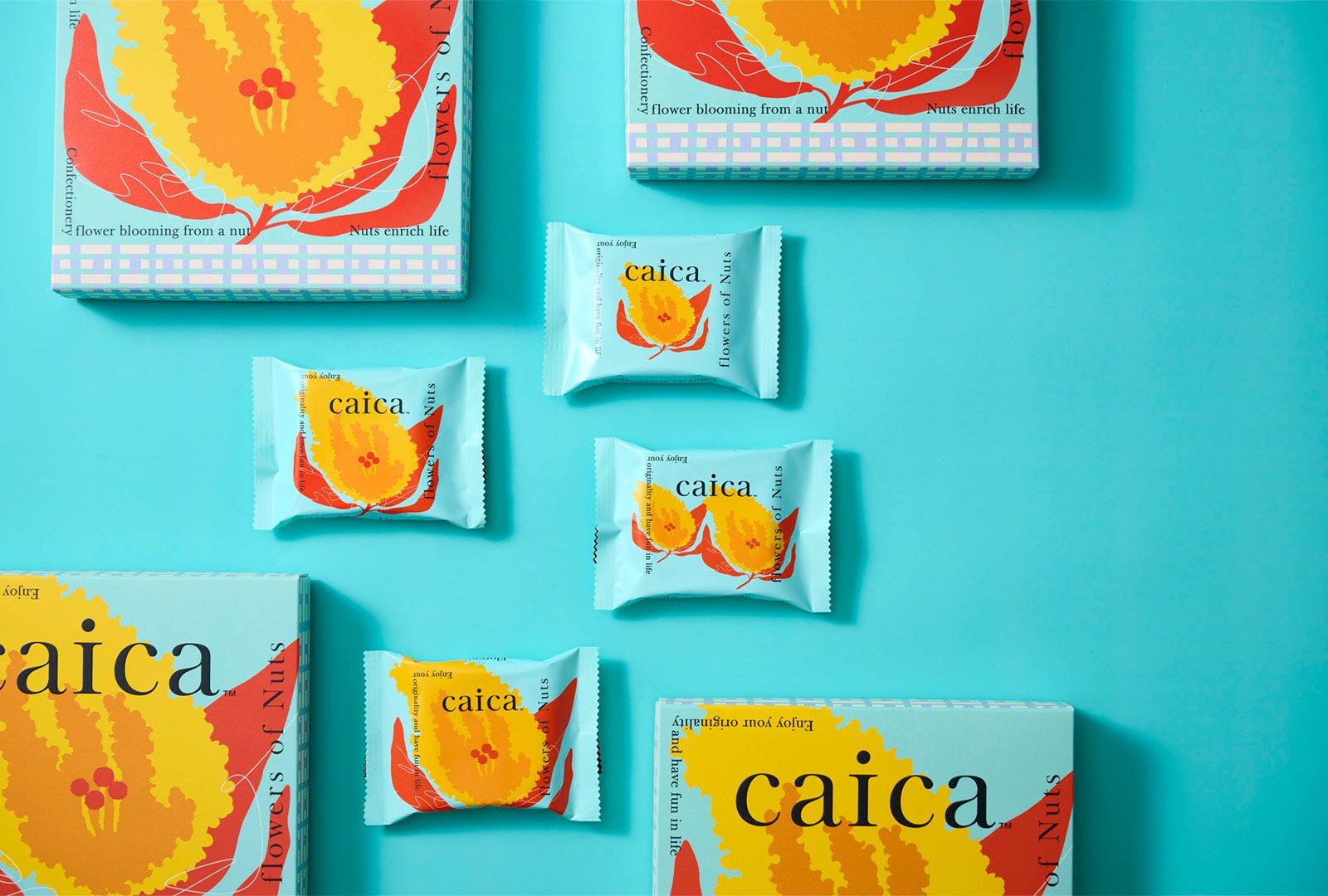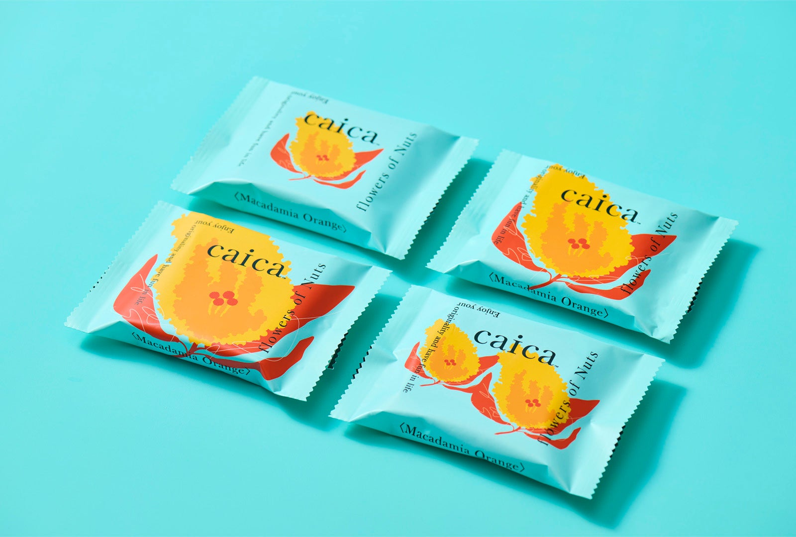 パッケージにはマカダミアナッツの花を大胆にあしらい、caicaらしい華やかで生命力あふれるイメージに仕上げました。夏らしさがあふれる、爽やかで甘いご褒美をお楽しみください。