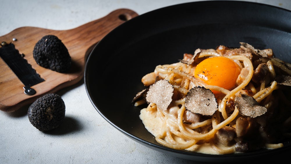 【パスタ】Cheese Tavern CASCINA スペシャリテ 黒トリュフ熟成ベーコンキタッラカルボナーラ