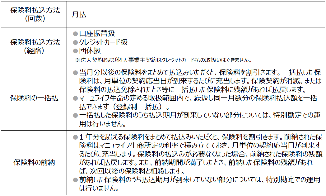 <『こだわり変額保険』 別紙> (詳細は右記URL を参照:https://www.manulife.co.jp/kodawari-hengaku)