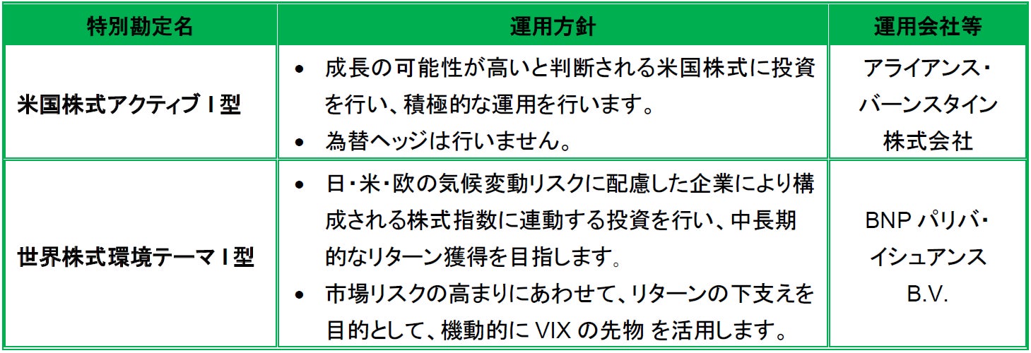 <特別勘定のラインアップに追加する2種類の特別勘定>