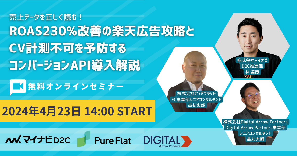 Digital Arrow Partners、3社共催でROAS230%の楽天広告攻略とCV計測不可を予防するコンバージョンAPI解説ウェビナーを開催