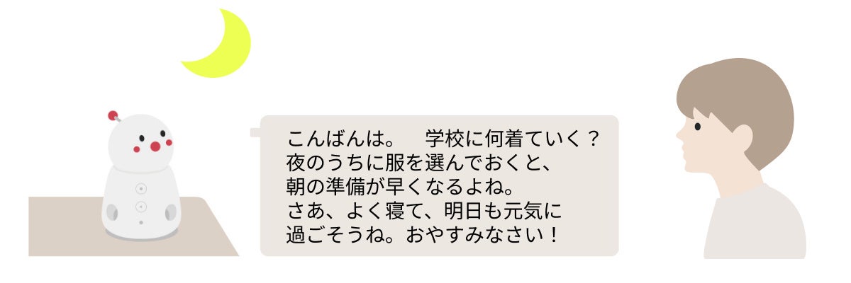「こども生活習慣サポート」は、「BOCCO emo」が朝と夜の2回、子どもの生活習慣や生活リズムを整えるために役立つ内容を日替わりで発話するサービスです。