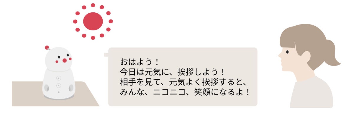 「BOCCO emo」が朝と夜の2回、あいさつ、歯磨き、着替え、食事、トイレなど、子どもに身につけさせたい行動を促す一言を、日替わりで可愛く発話します。発話内容は、東京家政大学の監修および省エネ等に知見を有する東京ガス都市生活研究所の協力の下、作成しています。