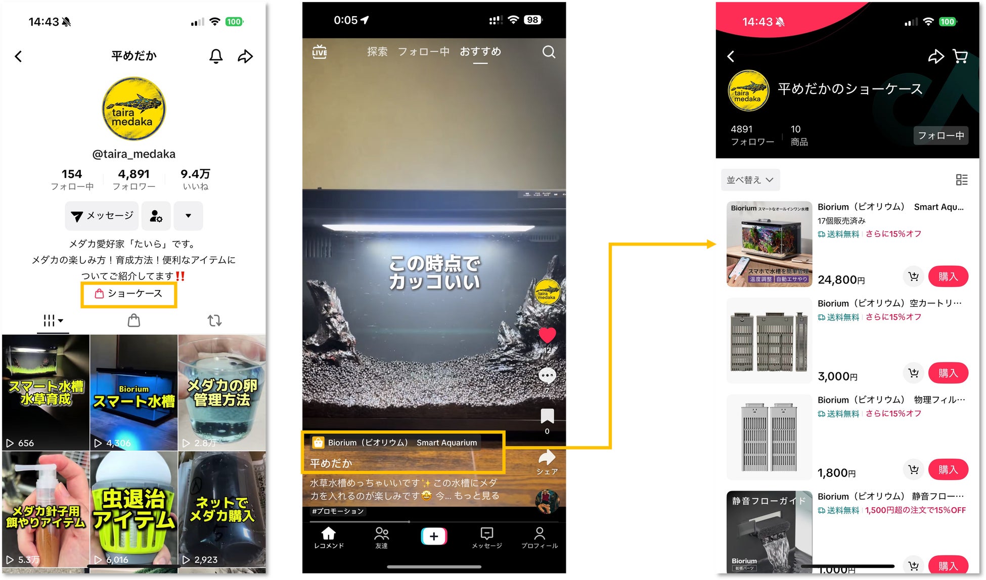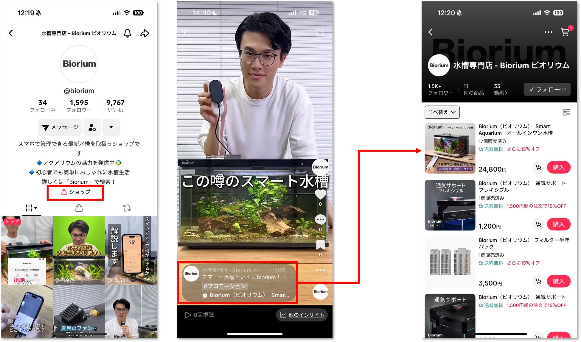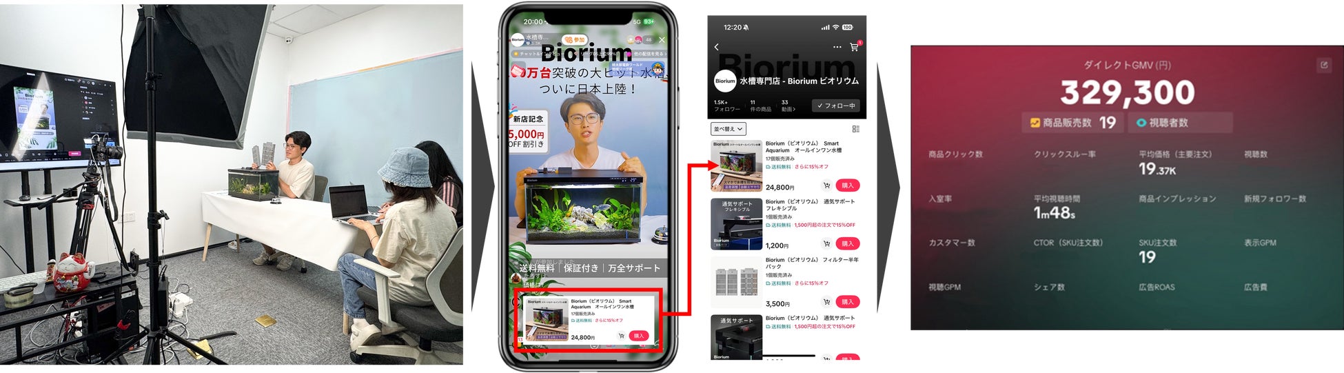 「ショッピングに国境はない」をスローガンに、中国消費者向け日本商品特化型越境ECプラットフォーム「豌豆(ワンドウ)」を運営するインアゴーラ株式会社(代表取締役CEO:翁 永飆 所在地:東京都港区 以下「インアゴーラ」)は、TikTok Shopが日本で本格展開を開始したことを受け、TikTok上に、スマート水槽「Biorium」のショップを6月30日付で開設しました。3月から開設していた自社公式アカウントにショップ機能を併設した状態で、6月30日に販売を開始し、7月1日には日本での初のTikTokライブを実施しました。当日は、約1時間半にわたってライブ配信を行い、同時視聴者数は最大50名に到達し、平均単価約2万円のスマート水槽「Biorium」19台の販売に至りました。TikTok Shopローンチから間もないタイミングにおいて、高単価かつニッチ領域商材で販売実績を作れたことに手ごたえを得ることができました。また、複数のインフルエンサーと連携し、TikTokアフェリエイトセンターのシステムを通じて、インフルエンサーによる動画配信経由の販売も開始しました。これらTikTok Shop独自の様々な特徴を活かして、スマート水槽「Biorium」の認知拡大と販売拡大を加速させ、今後も日本でのTikTok Shop事業の拡大を図ってまいります。