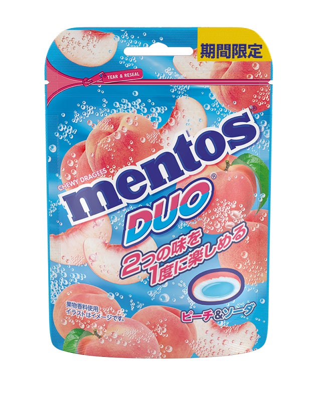 「メントス ザ・コーラ」は、シュワシュワ感がアップし、すっきり爽やかで本物のコーラのような味わいを楽しめるフレーバーです。「メントス DUO ピーチ&ソーダ」は、外側はカリッとした食感でジューシーなピーチ味、内側は爽快なソーダの味わいが広がり、2つの味を1度に楽しめます。「メントス ラムネ」は、夏に向けたシュワシュワ感のある爽やかさが特長です。