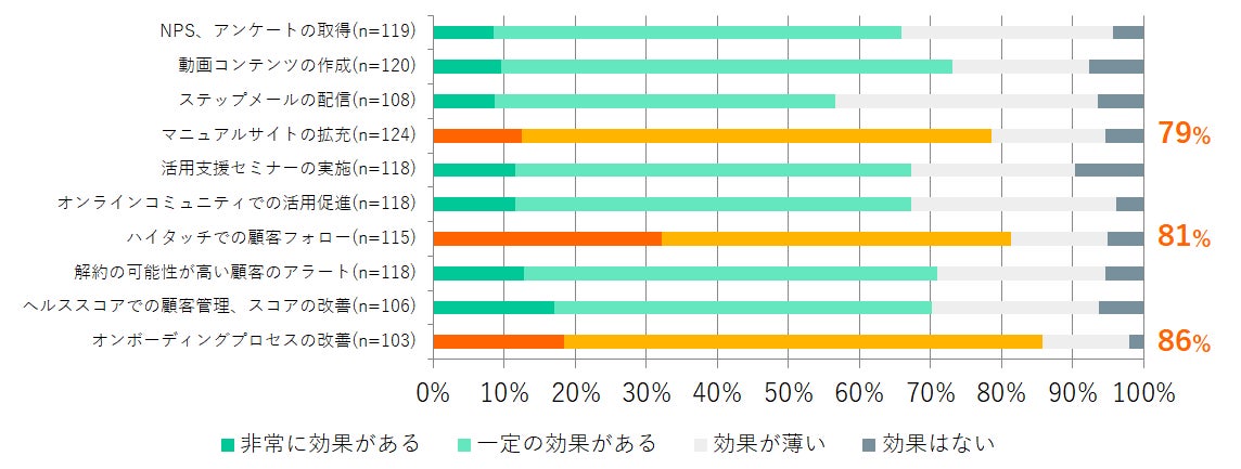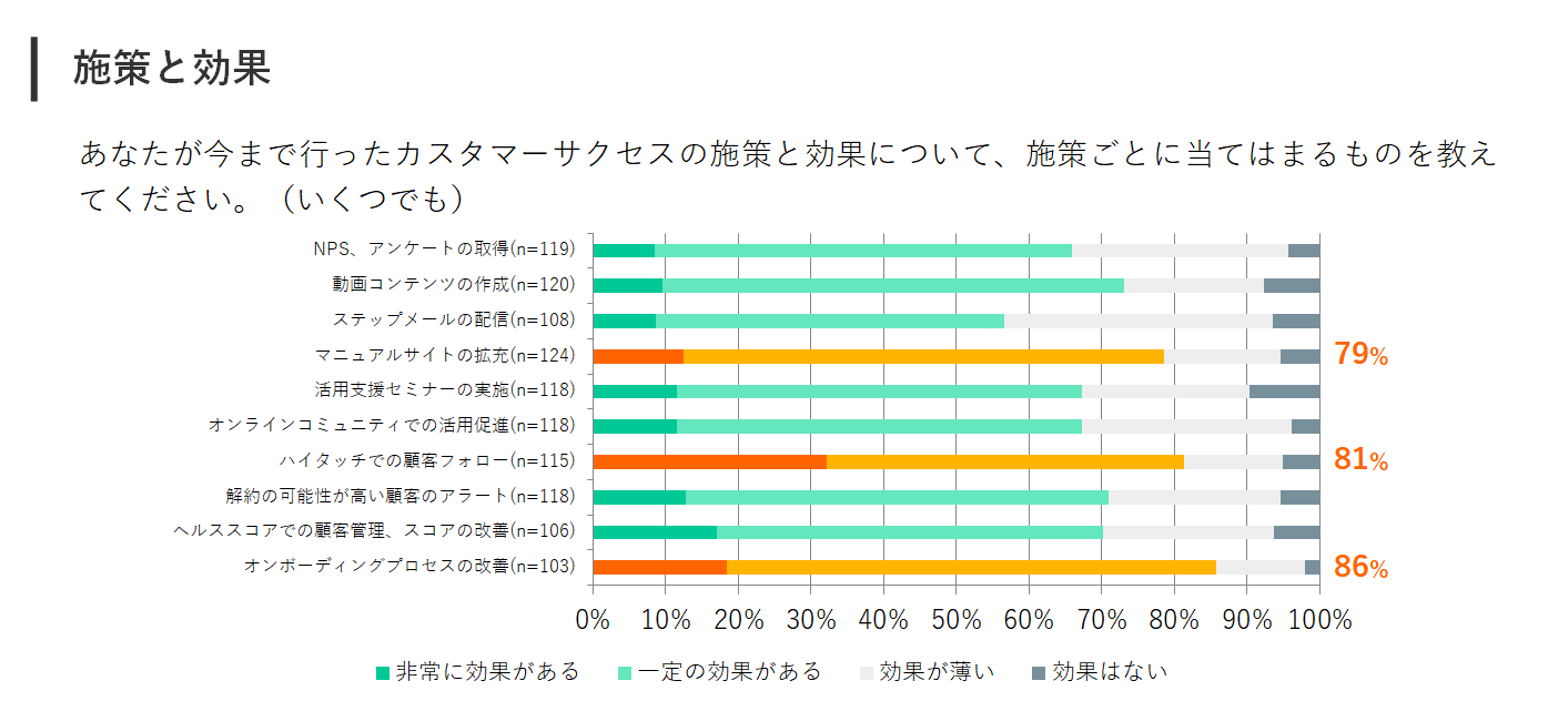 Q.あなたが今まで行ったカスタマーサクセスの施策と効果について、施策ごとに当てはまるものを教えてください。(いくつでも)