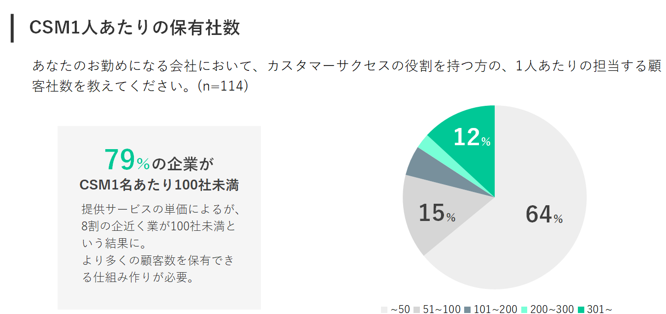 Q.あなたのお勤めになる会社において、カスタマーサクセスの役割を持つ方の、1人あたりの担当する顧客社数を教えてください。(n=114)