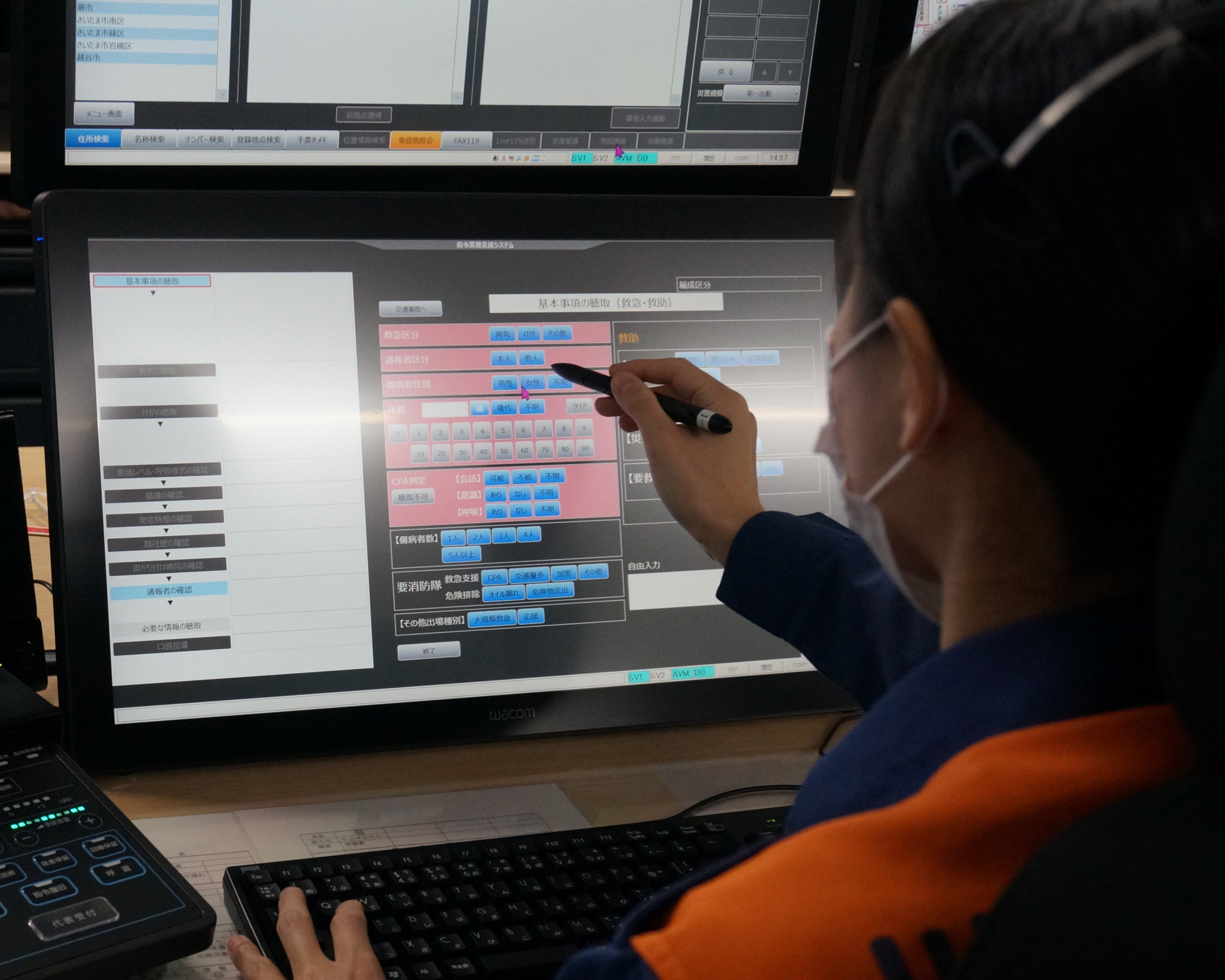川口市では2023年に46,491件の通報がありました。各事案には丁寧かつ迅速な対応が求められます。ワコムの液晶ペンタブレット「DTH-2452」は、23.8インチの大画面で各項目が見やすく、視認性が向上しました。また、119番通信受信時には筆圧機能を搭載した電子ペンを使用して、直感的かつ迅速な記録が可能となり、作業時間の短縮に役立っています。電子ペンの滑らかな書き心地や色や太さの自由な選択肢も利便性が高く評価されています。