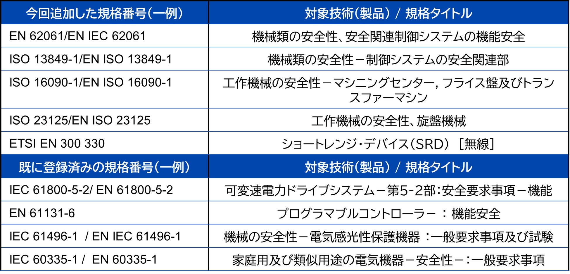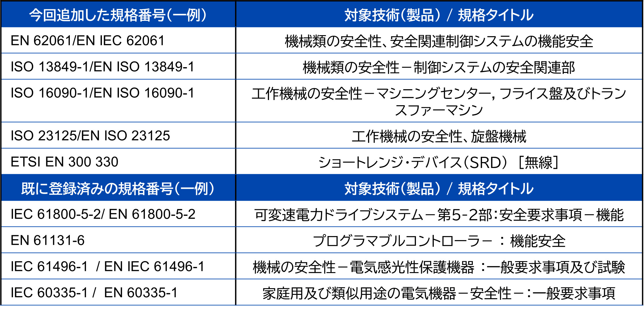今回の認定スコープ拡大により、米沢試験所では機能安全に関わるEMC試験の対応範囲が以下の通り広がり、より多様な製品・規格への対応が可能となりました。これにより、国内外の製造業者に対して、より信頼性の高い試験サービスを提供し、製品の市場投入を強力にサポートします。