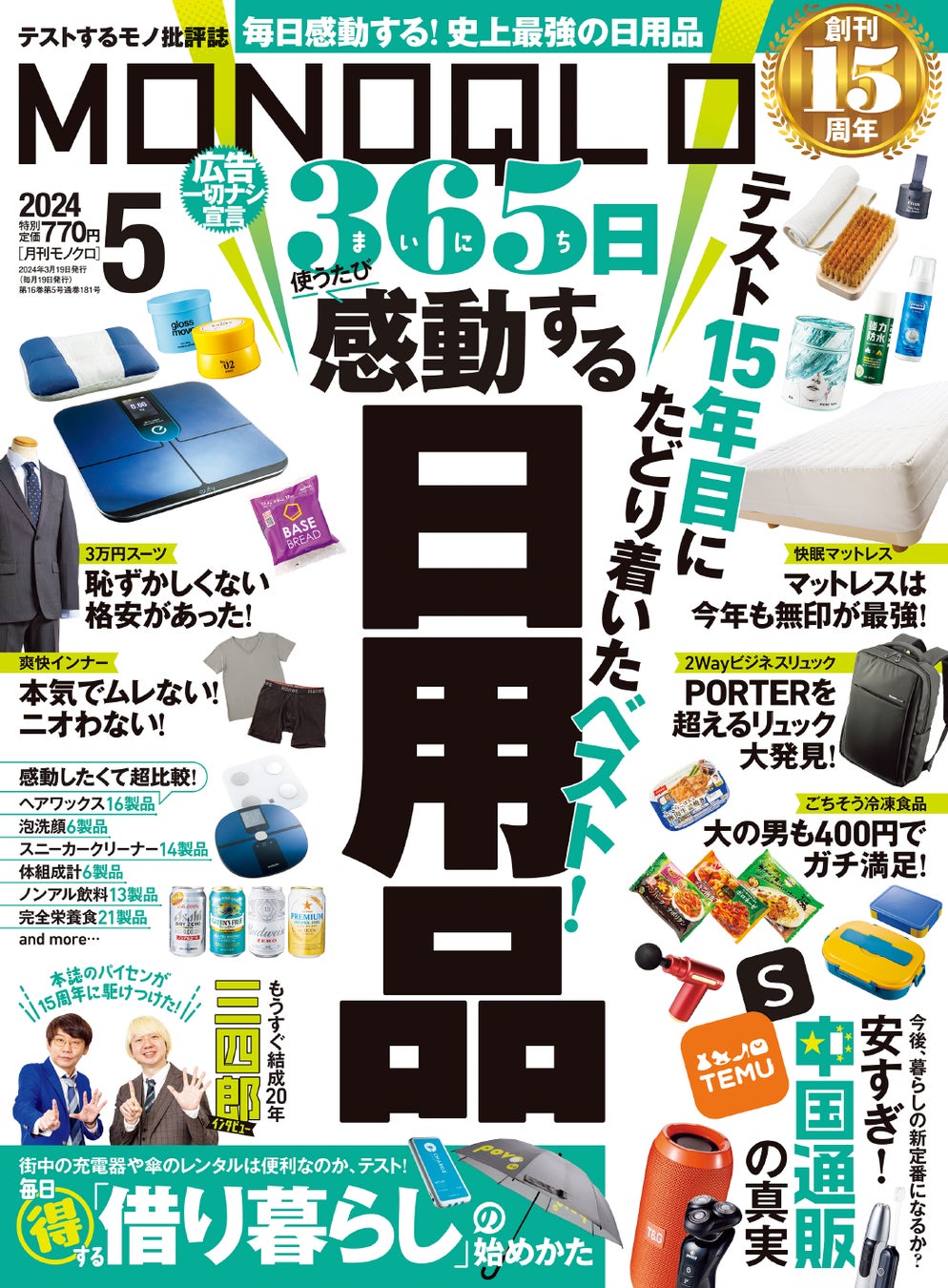 テストするモノ批評誌『MONOQLO』2024年5月号(3月19日発売)