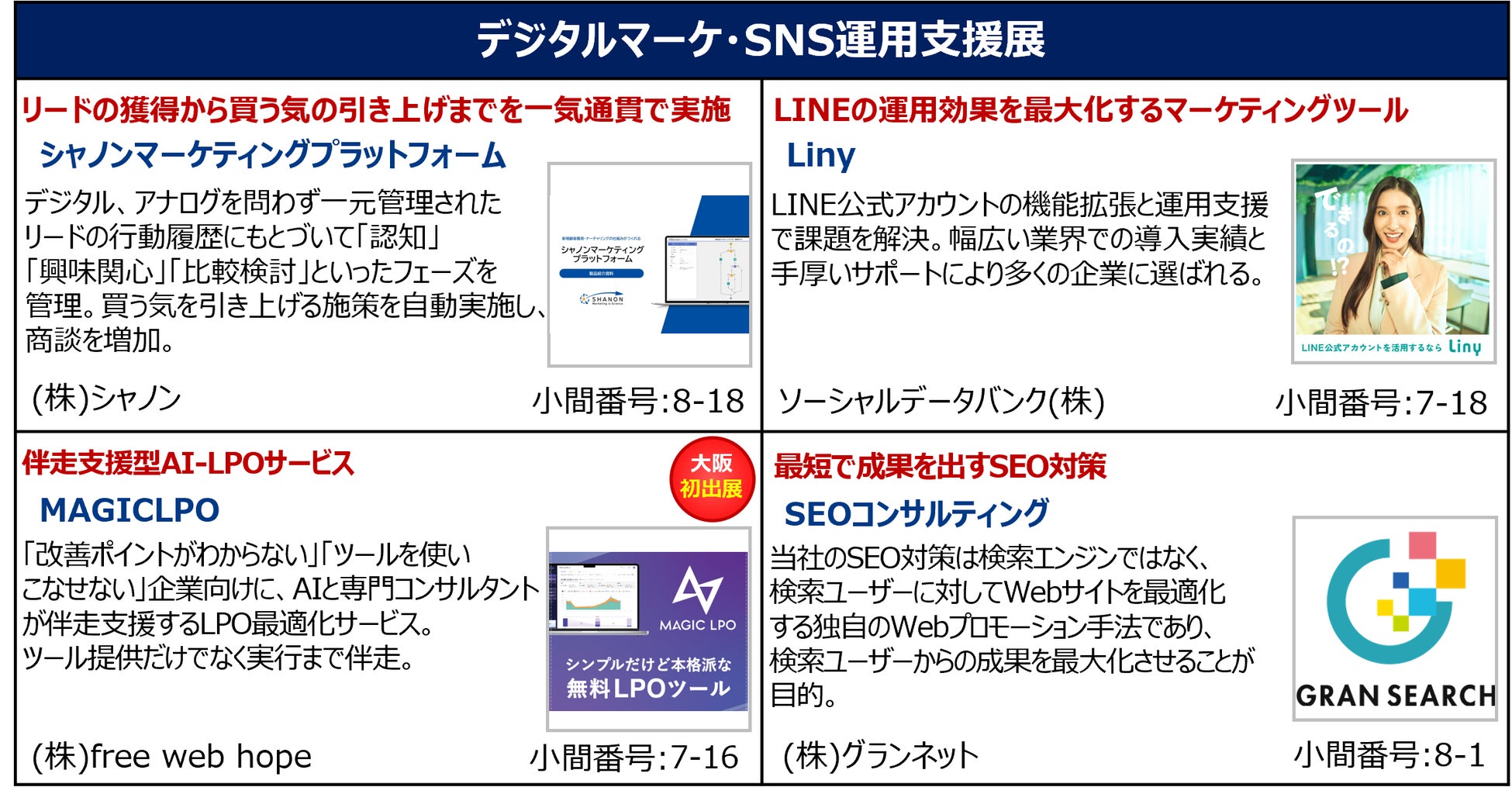 このほかにも、売上アップ・販売促進・DX推進のための製品・サービスが多数出展!
