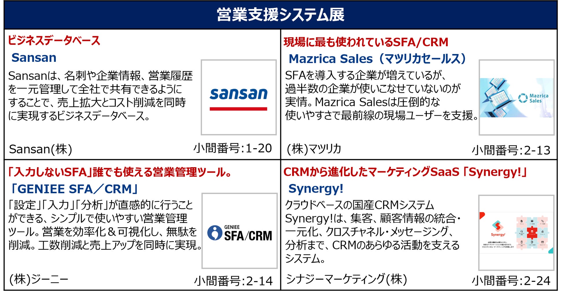 営業・マーケDXPO大阪’26 出展製品・サービス(一部抜粋)