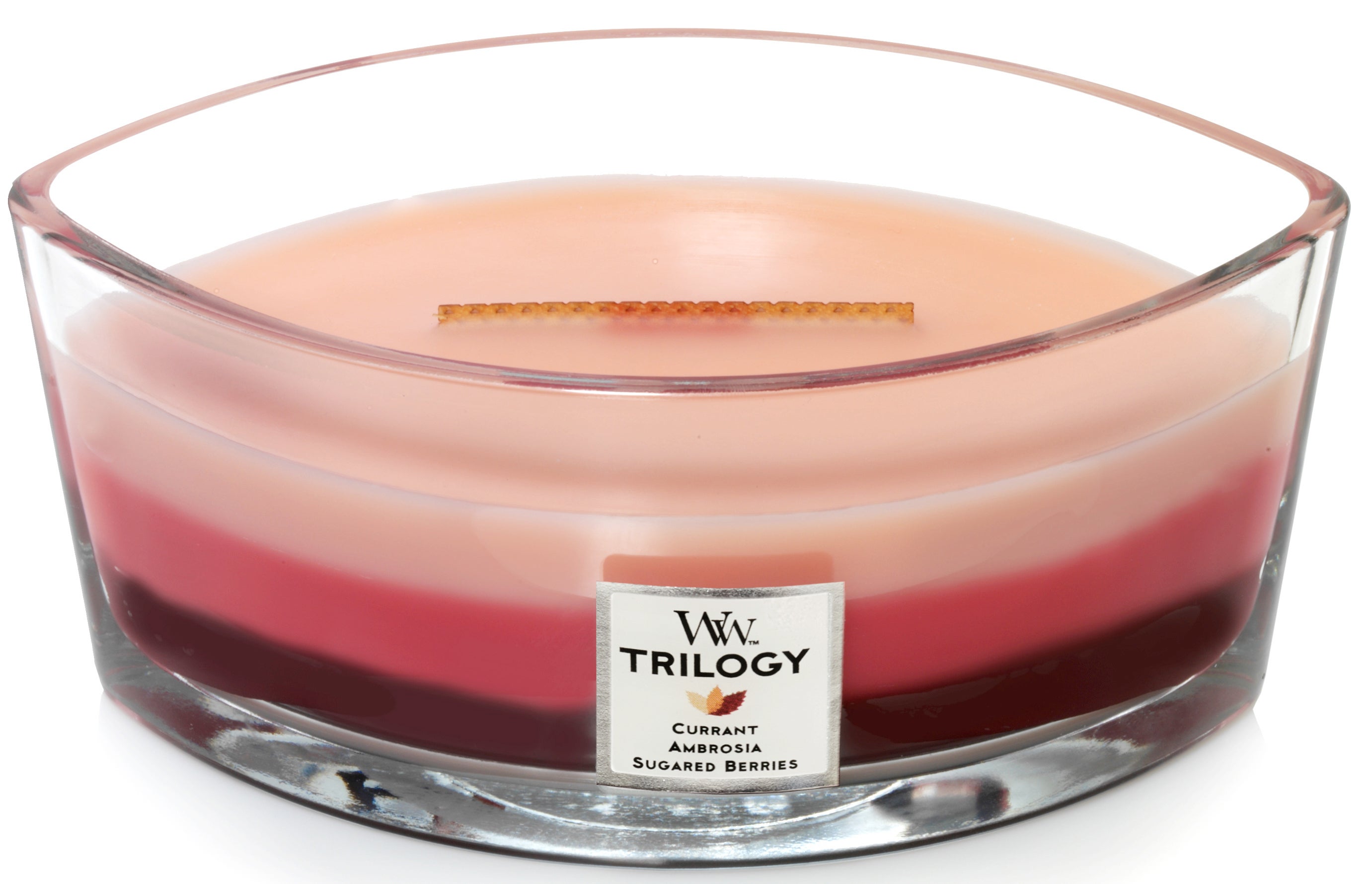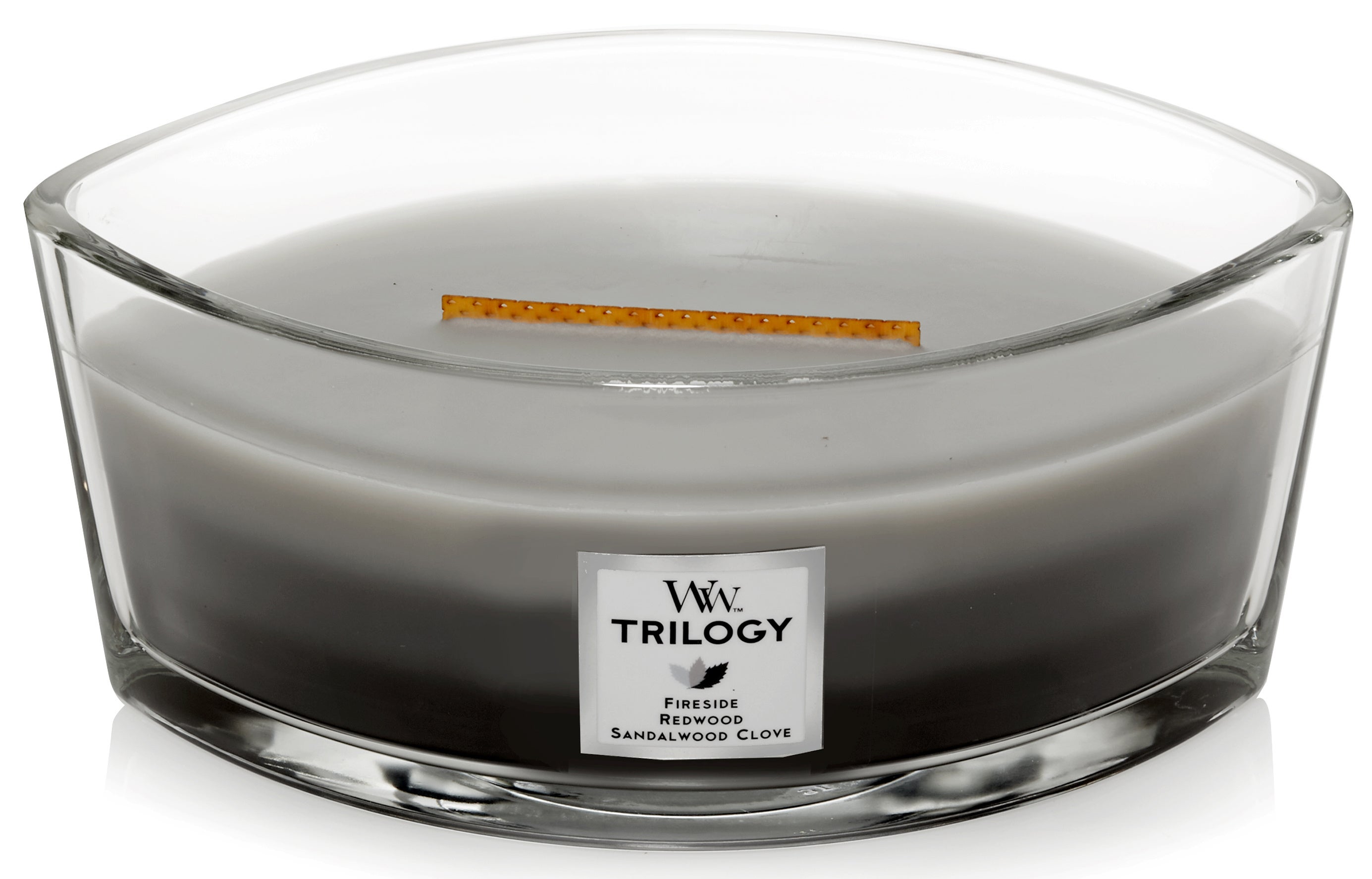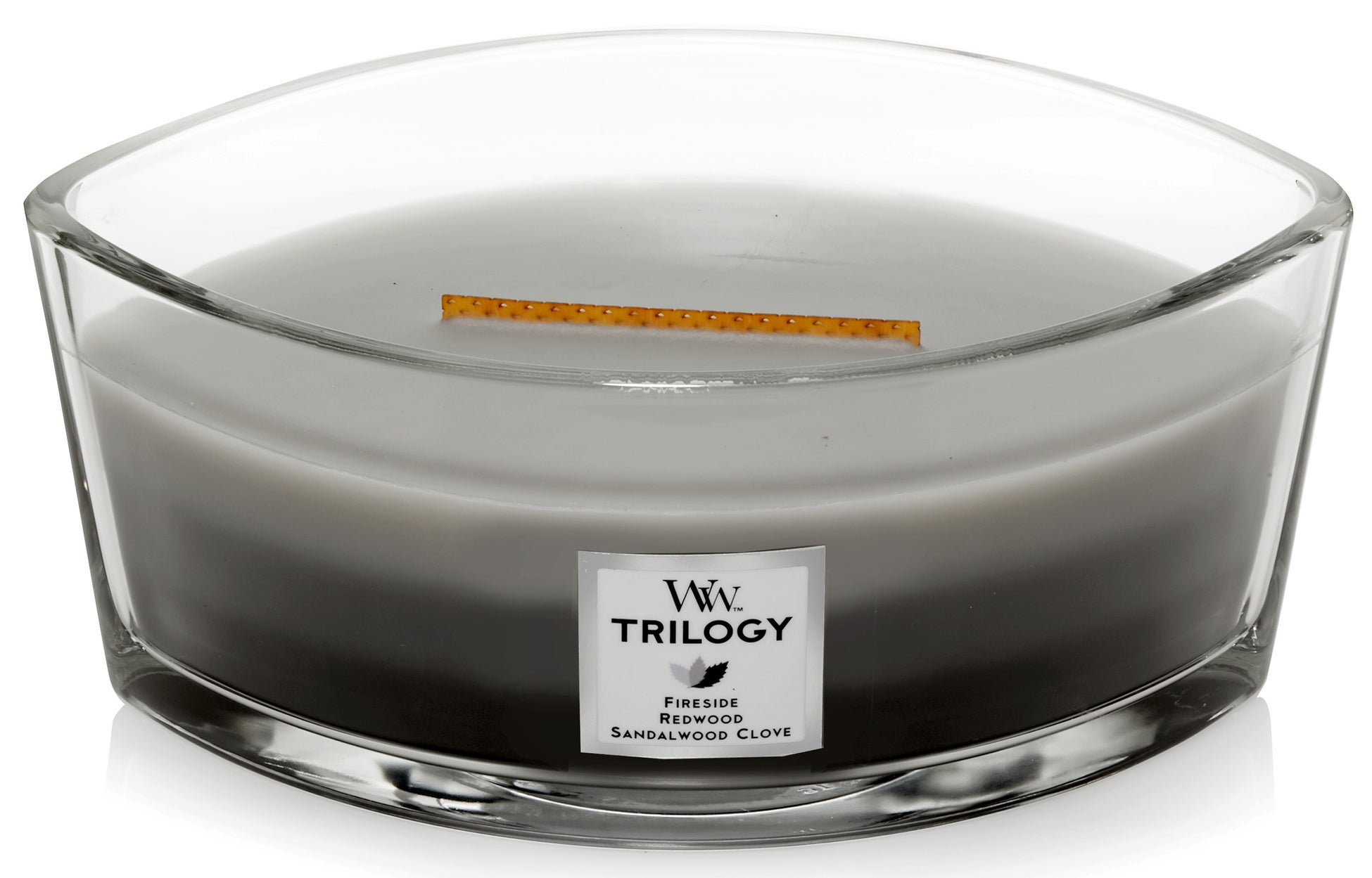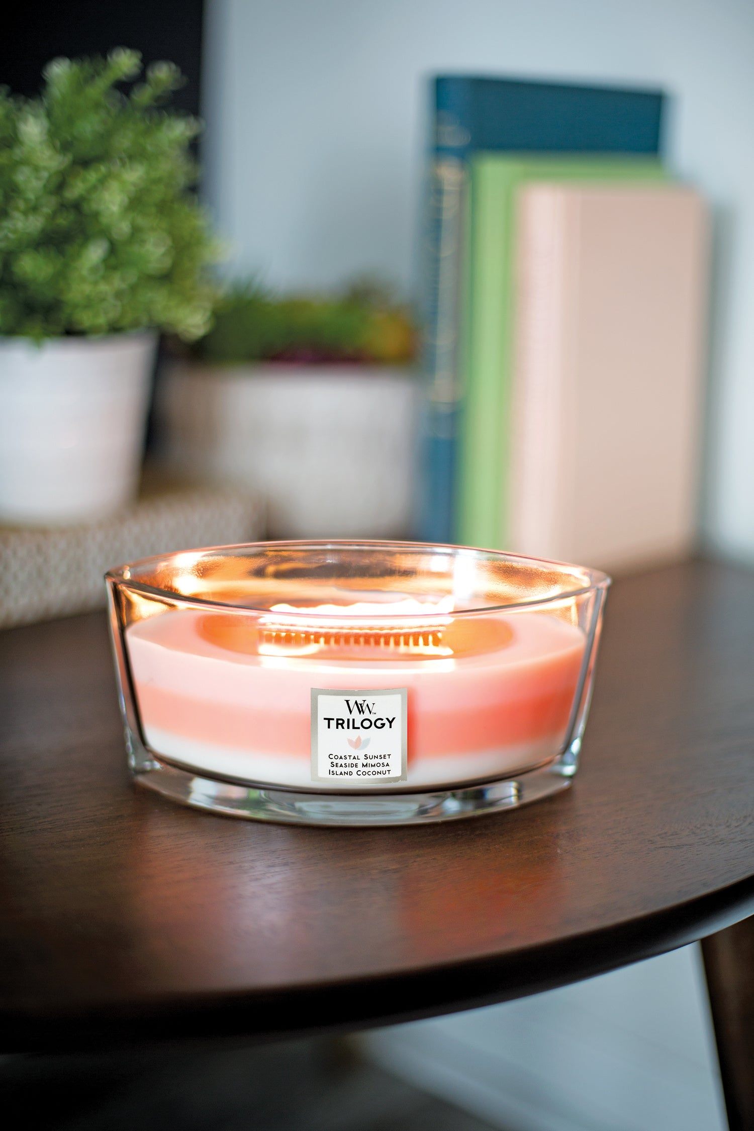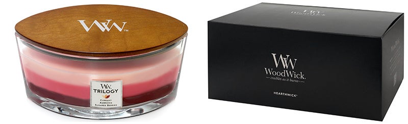 パチパチと焚火ような音が楽しめるキャンドル「ウッドウィック」から新商品!重厚感と流れる炎が美しいハースウィックキャンドルに、3層の色と香りが楽しめるトリロジータイプが仲間入り!