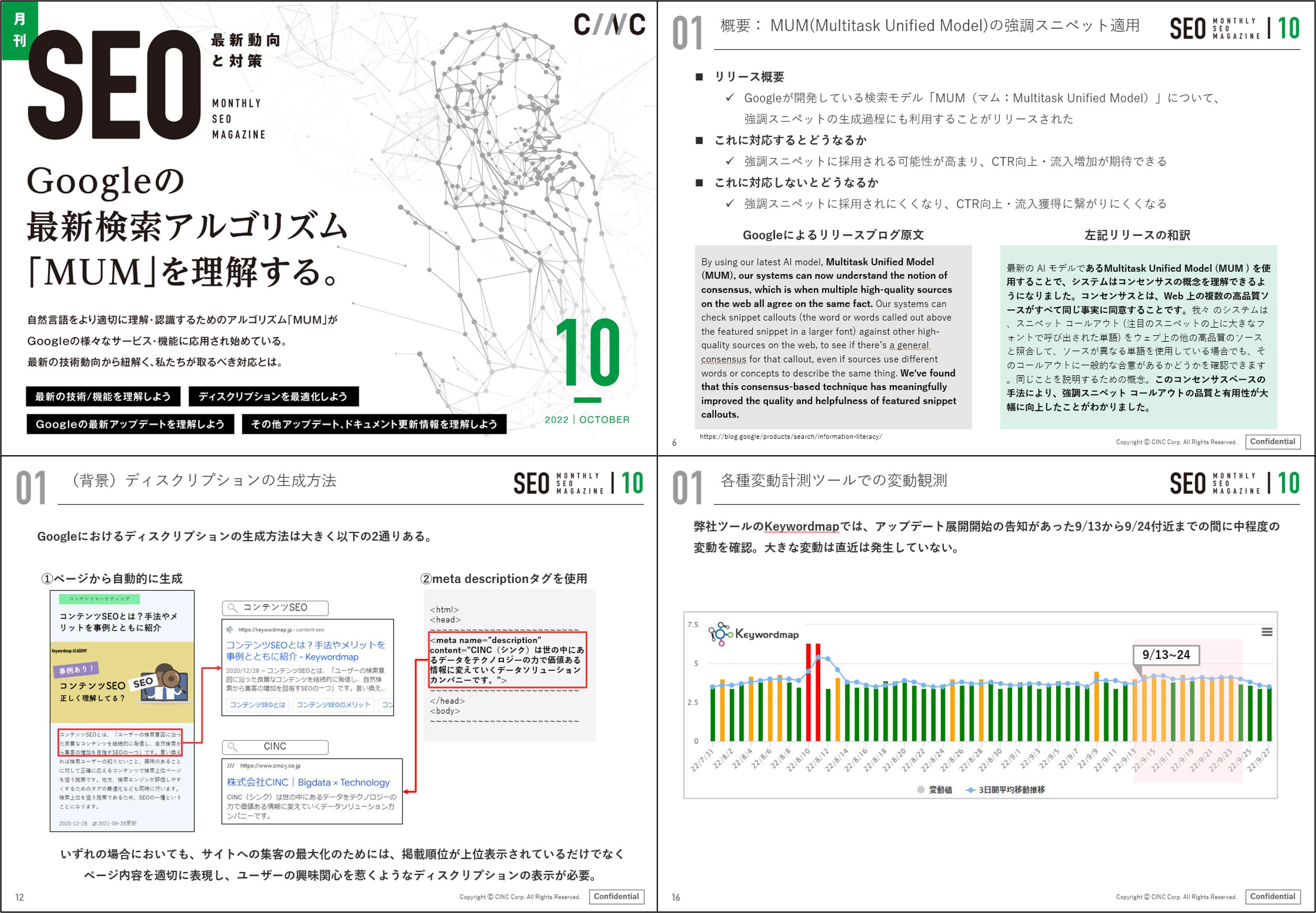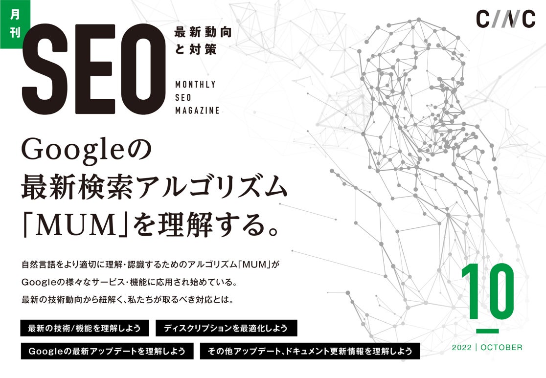 株式会社CINC(東京都港区 代表取締役社長 石松友典、以下 CINC)は、毎月特定のテーマのSEO最新動向と対策についてレポートする「月刊SEO」の10月度版を公開しました。