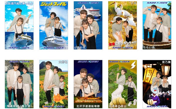 佐渡汽船の船舶や佐渡島観光をモチーフにしたデザインから好きな背景を選んで撮影をお楽しみいただけます。