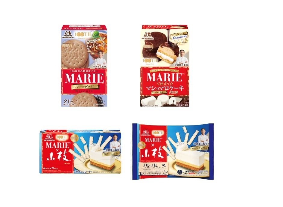小麦の香ばしさとミルクの味わいを生かしたシンプルでやさしい味わいのビスケット「マリー」は、1923年の発売以来、親から子へ、そして孫へと3世代を超えて多くの皆さまにご愛顧いただいております。この度、「マリー」100周年を盛り上げるべく、素材の味わいを活かしたスイーツ作りに定評のある安食シェフ監修のもと、今だけしか味わえない特別な商品を開発しました。