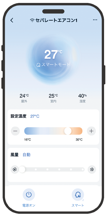 無線LAN※7を本体に内蔵することで、スマートスピーカーや専用アプリ「Haismartアプリ」を使用した遠隔操作に対応。音声操作※8が可能なため、手が離せない様な忙しい生活シーンでもスムーズにエアコンを操作できます。また、外出先からもスマートフォンで遠隔操作ができるため、帰宅前にエアコンを稼働させるなど、生活リズムに合わせてお部屋の温度環境をコントロールすることができます。さらに、スマホアプリによる「おやすみ曲線」機能では、体調やライフスタイルに合わせた快適な眠りをサポートいたします。