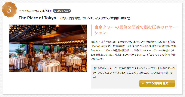 「OZのレストラン予約」アフタヌーンティー部門 第3位