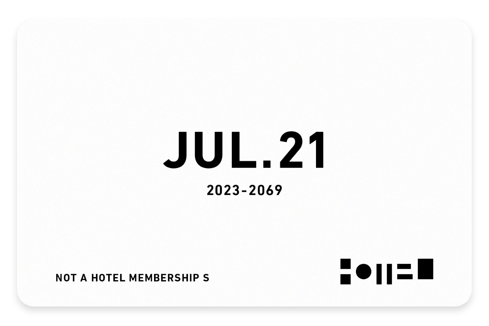 気軽にNOT A HOTELを体験したい方向けに毎年1泊から楽しめる会員権NFTです。MEMBERSHIP Yと同様にNOT A HOTELが主催する様々なイベントへの参加も可能です。