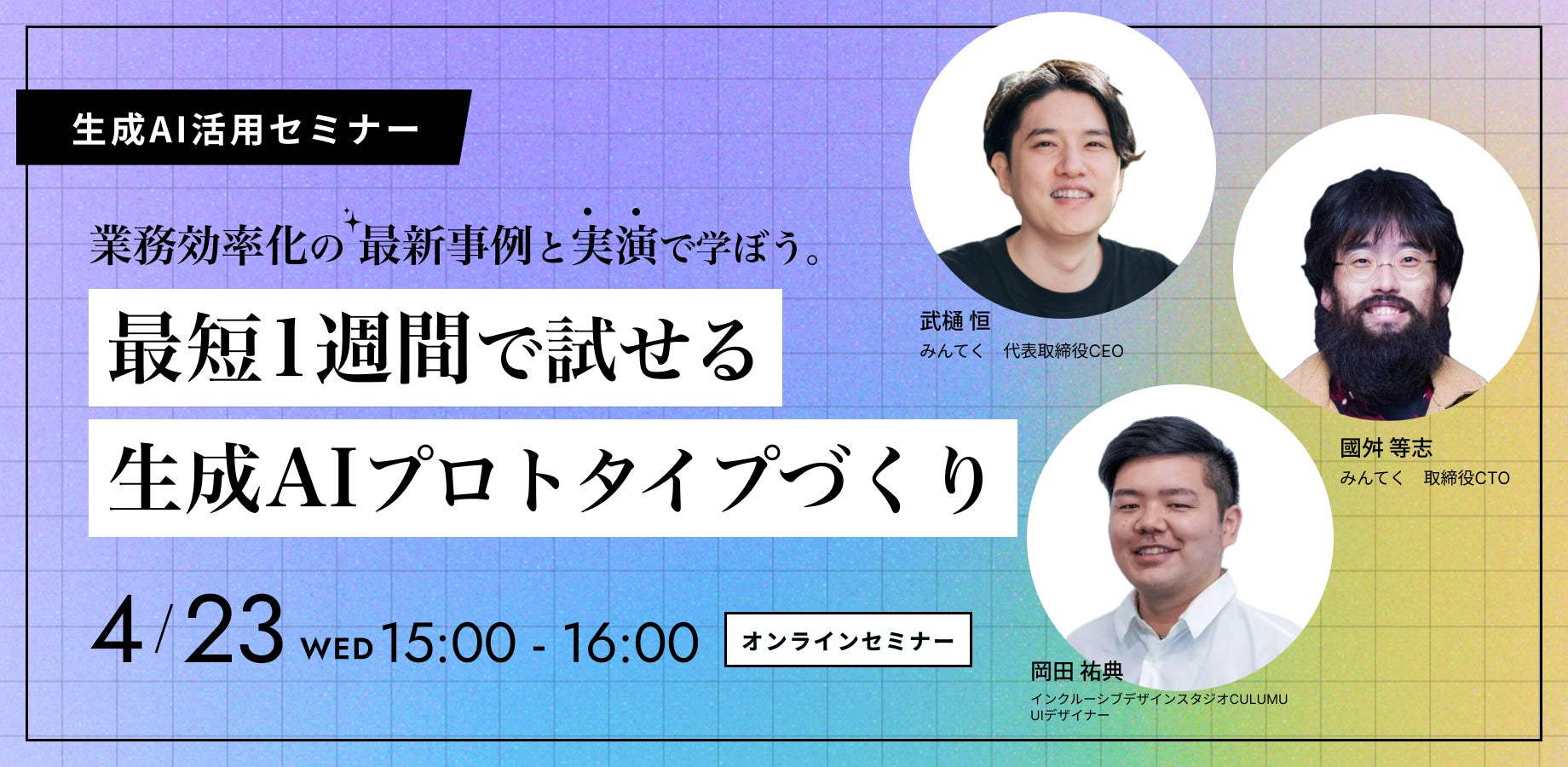 【4/23 共催セミナー開催】生成AIによる業務改善と実践プロトタイプ講座 〜事例と実演で学ぶリソース不足実行でもできる最新活用法とは?〜