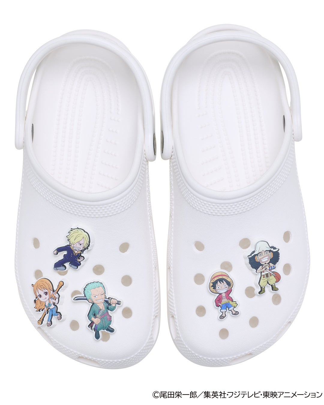 『ONE PIECE』は、海賊王をめざすモンキー・D・ルフィを船長とする海賊“麦わらの一味”が“ひとつなぎの大秘宝(ワンピース)”を求めて航海を続ける物語です。友情や絆、胸が熱くなるストーリーが多くのファンに支持され、世代を超えて愛され続けています。今回のコラボレーションでは、そんな『ONE PIECE』の主人公、モンキー・D・ルフィや仲間のトニートニー・チョッパーをあしらったクラシック クロッグをはじめ、麦わらの一味の船「サウザンド・サニー号」をモチーフにした物語ならではのデザインもラインアップ。さらに、ロロノア・ゾロ、ナミなどのキャラクターが揃ったジビッツ™ チャームで、お気に入りのシューズやアクセサリーを自分らしくカスタマイズできます。この春、キャラクターたちを足元に連れて一緒に冒険に出かけましょう。