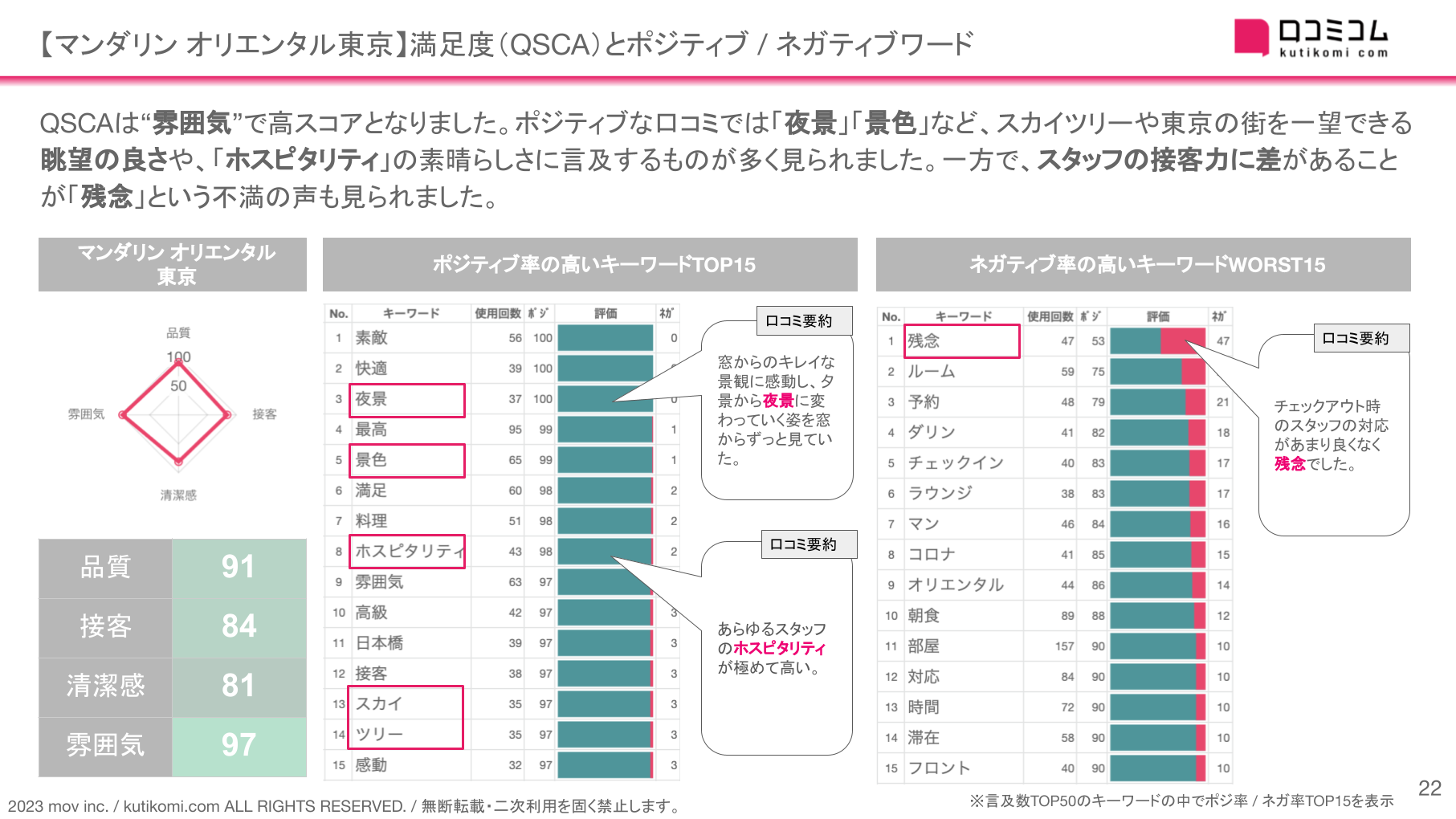 ■ 【マンダリン オリエンタル東京】の口コミで多用されるワードを分析してみると...