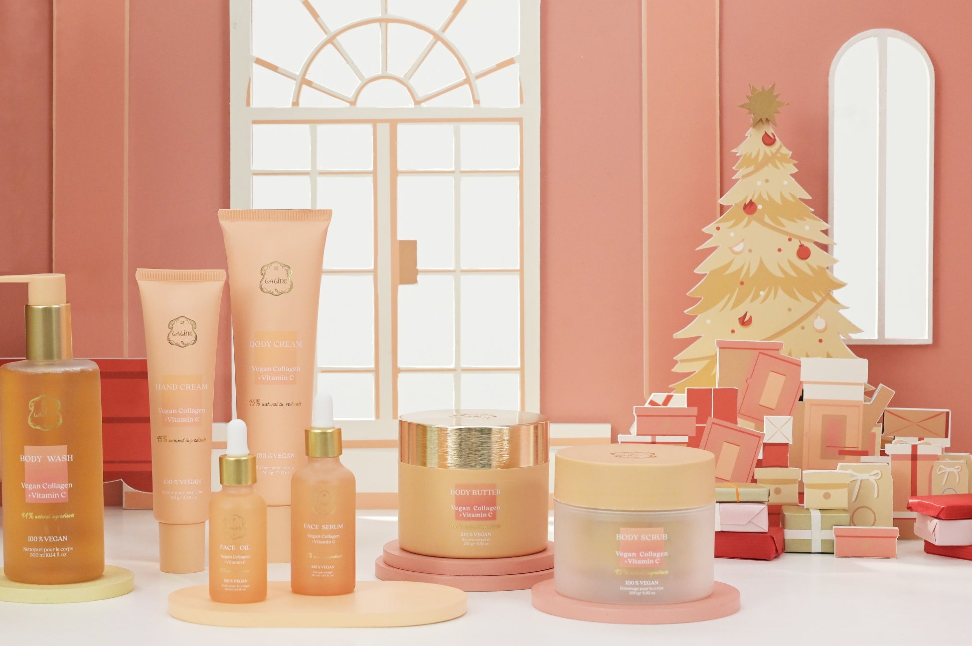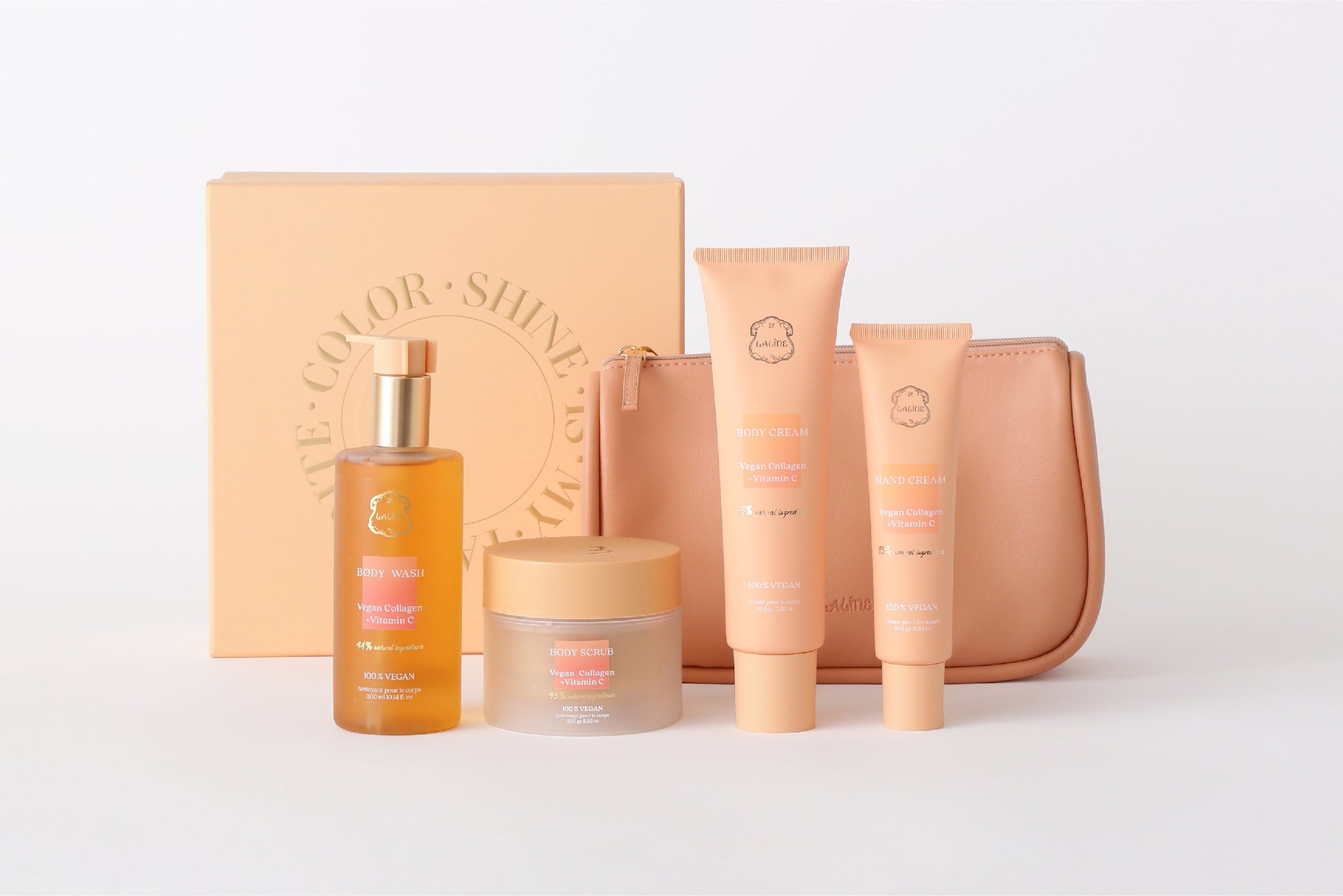 すべて天然由来成分91%以上のヴィーガンコスメでありながら、植物性コラーゲンとビタミンCを配合し、ふっくらとしたハリや、透明感*のある素肌へと導く特別コフレです。