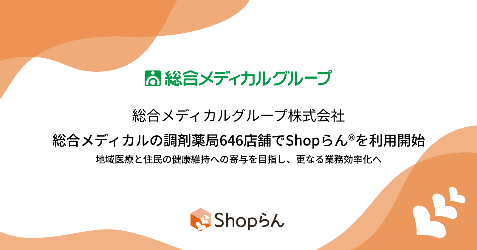 総合メディカルの調剤薬局 646 店舗で Shopらん(R)を利用開始~地域医療と住民の健康維持への寄与を目指し、更なる業務効率化へ~