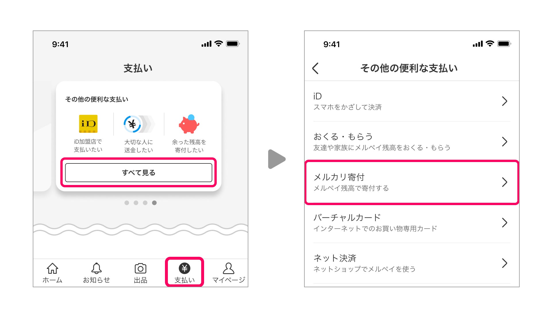 - 5. 「寄付金(メルペイ残高)」を選択して、金額を確認する