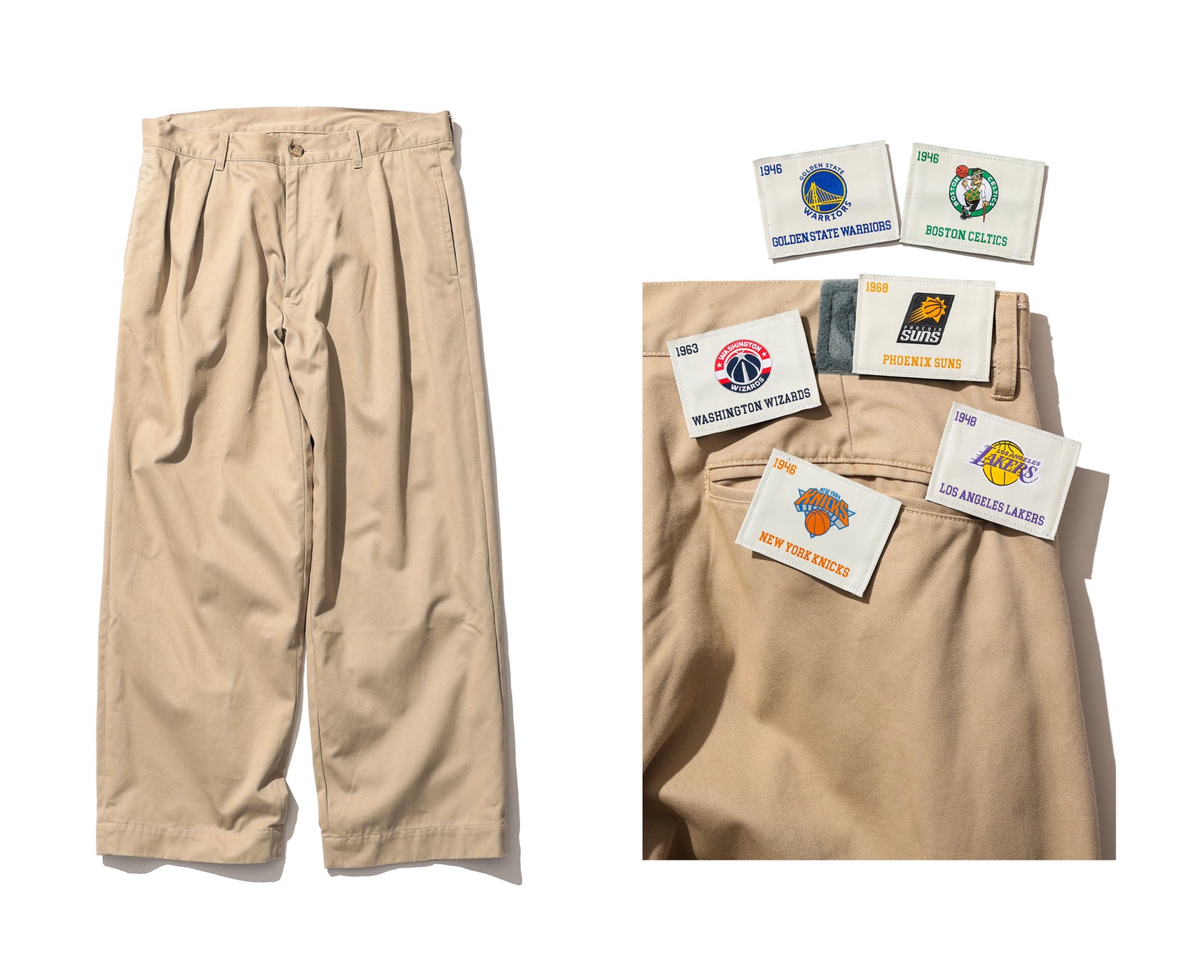 コレクションは日常のリアルなスタイルに馴染むよう、ゆったりとしたサイズバランスを重視。スタジアムジャケットやスウェットなど、NBAと相性の良いウェアはもちろんのこと、オックスフォード生地のボタンダウンシャツやチノパン、デニムなど、これまでNBAチームのアイテムそして展開していないものもラインアップします。