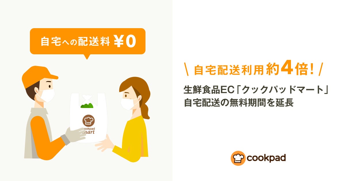 クックパッド株式会社は、2022年2月8日より実施している自宅待機者等の支援を目的とした「自宅配送料無料」施策について、2022年3月31日まで延長することを決定しました。