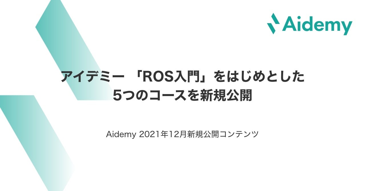 アイデミー 「ROS入門」をはじめとした5つのコースを新規公開