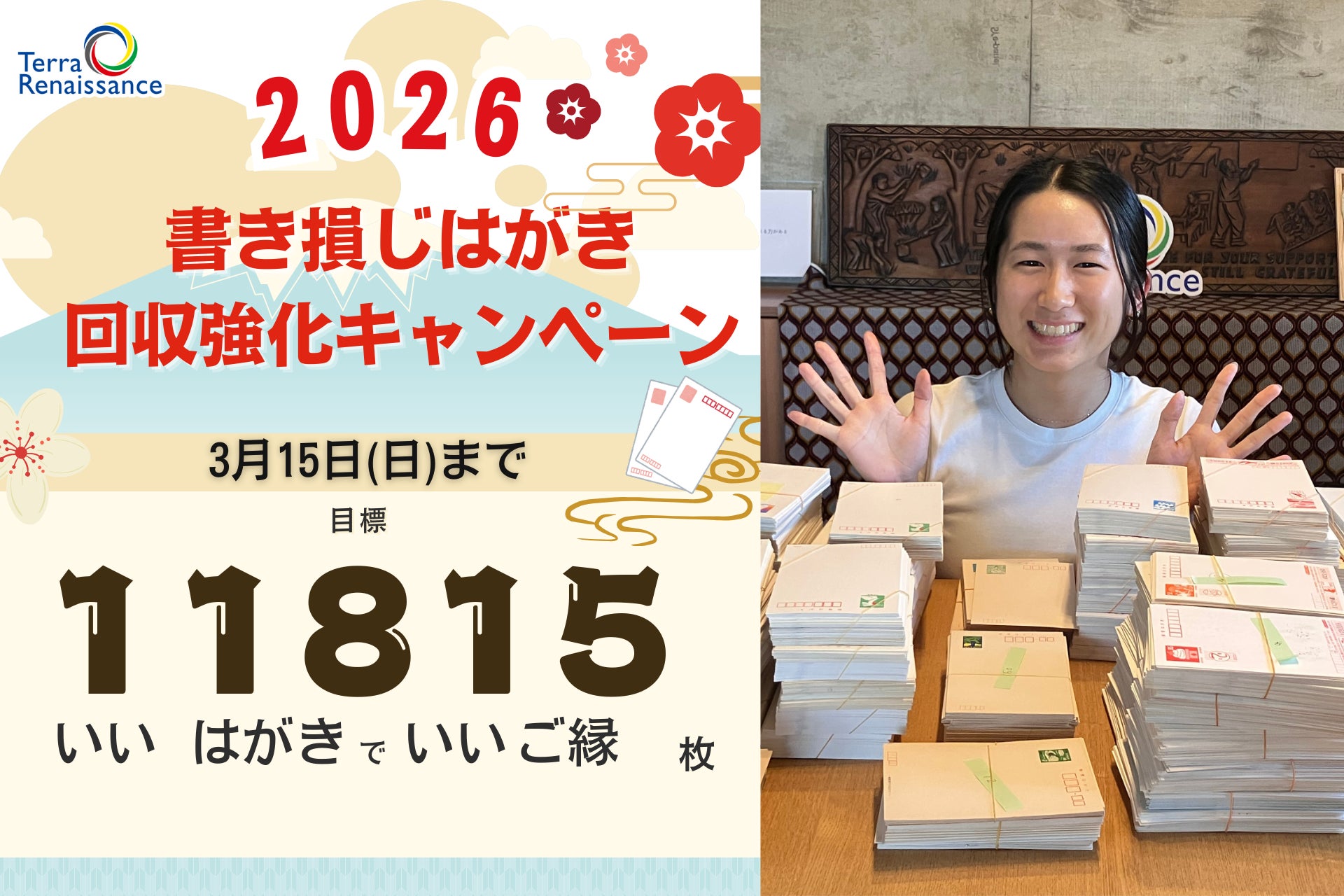 認定NPO法人テラ・ルネッサンス(理事長:吉田真衣、所在地:京都府京都市、以下テラ・ルネッサンス)は、2026年1月20日〜3月15日の期間で、書き損じはがき・未使用はがきの回収の呼びかけを強化します。