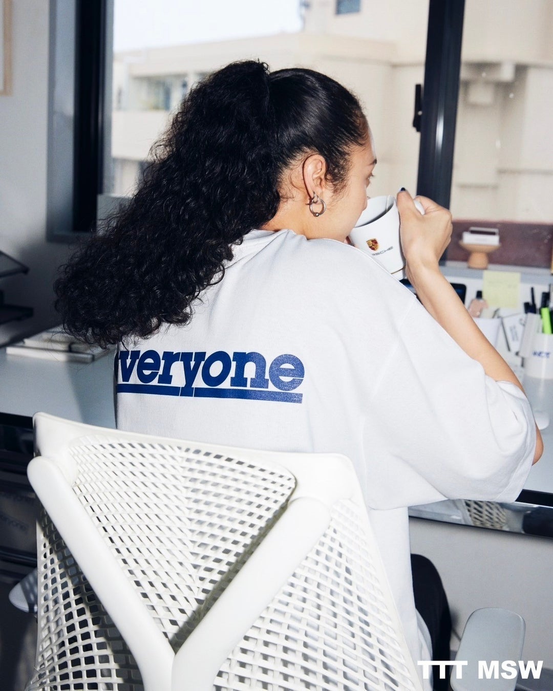 everyoneのTシャツボディーに、TTTMSWデザインのeveryoneのロゴを施したバックプリントTシャツやトートバック、ワインボトルを再活⽤したインセンススタンドなどを展開します。